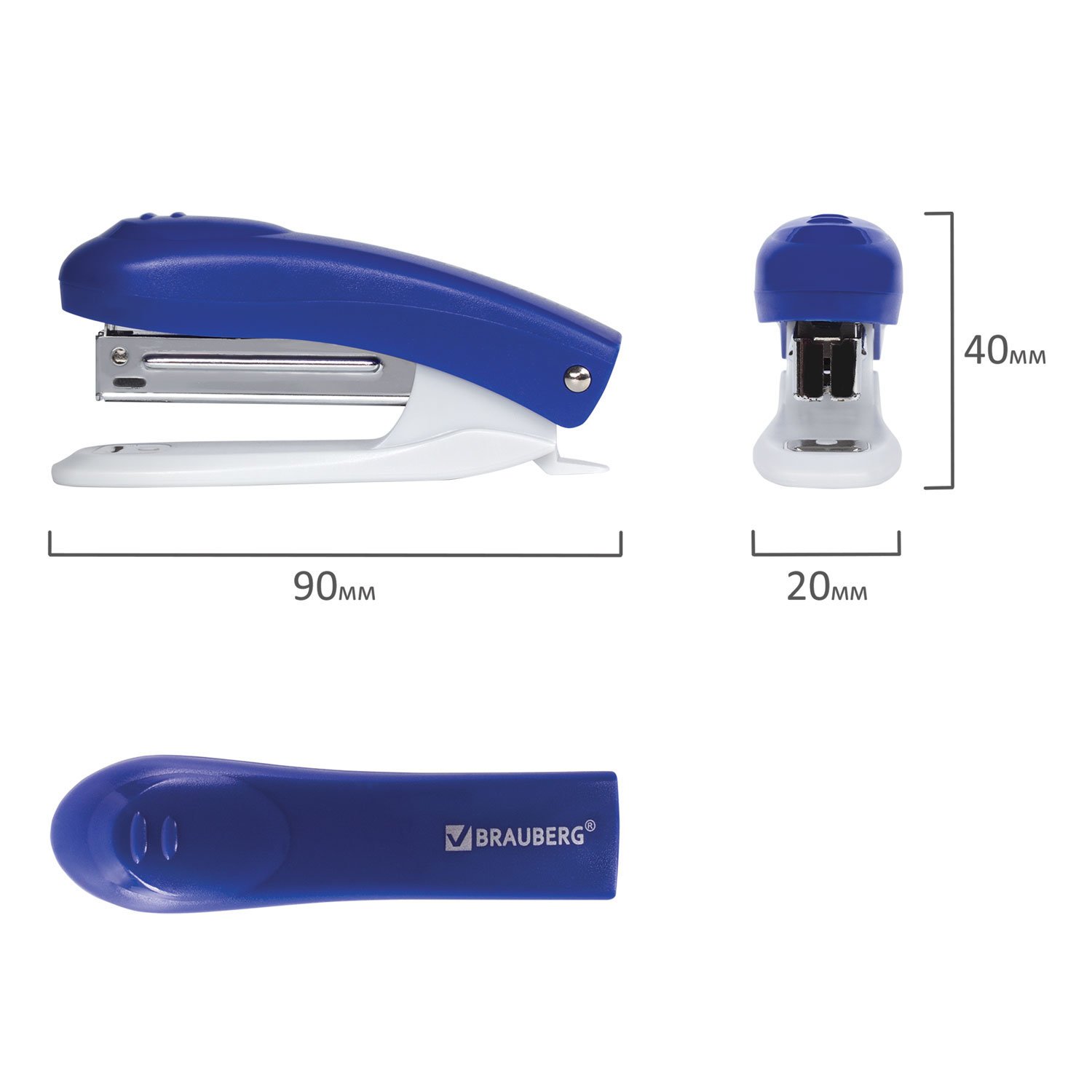 Настольный степлер BRAUBERG "Original" с антистеплером в синем пластиковом корпусе с металлическим механизмом cпособен скрепить до 12 листов. Подходящий размер скоб № 10. Виды сшивания: закрытый, прямой. Глубина закладки бумаги - 47 мм. Габариты: высота - 40 мм, ширина - 20 мм, длина - 90 мм. Благодаря компактным размерам удобен в использовании и занимает мало места на рабочем столе, а классический дизайн делает степлер подходящим к любому интерьеру. Продается в картонной упаковке.