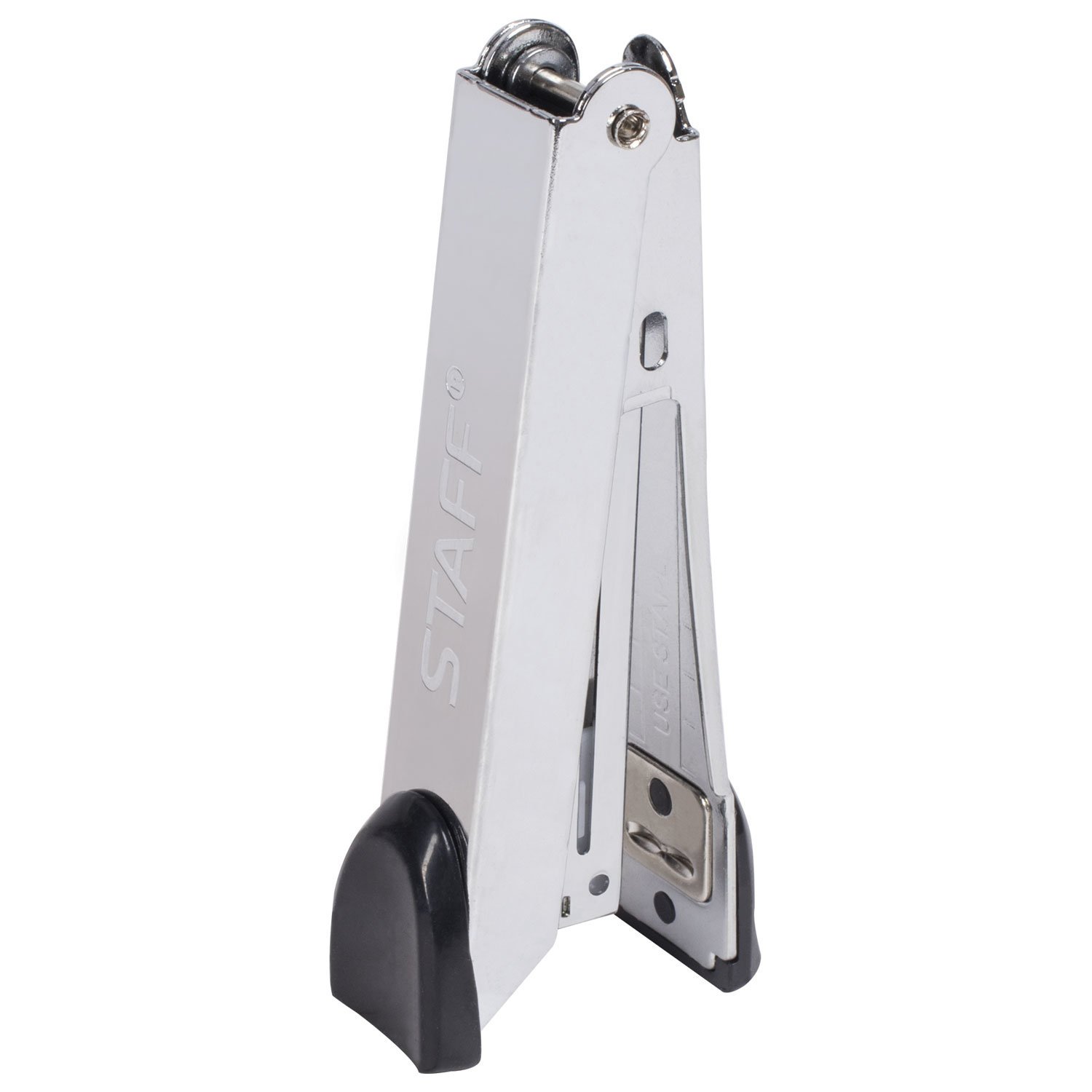Настольный вертикальный металлический степлер STAFF № 10 обеспечит качественное скрепление документов не только в офисе, но и дома.