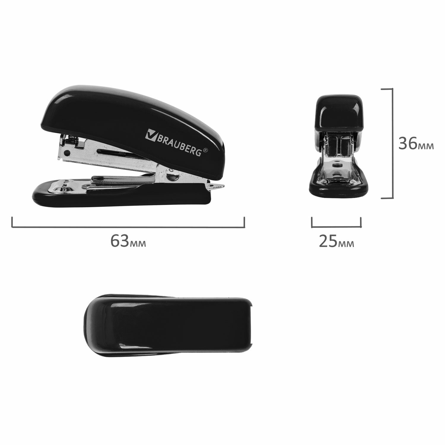 Настольный степлер МИНИ BRAUBERG "Classic" в черном пластиковом корпусе с металлическим механизмом способен скрепить до 12 листов. Подходящий размер скоб № 10. Виды сшивания: закрытый. Глубина закладки бумаги - 29 мм. Габариты: высота - 36 мм, ширина - 25 мм, длина - 63 мм. Благодаря компактным размерам удобен в использовании и занимает мало места на рабочем столе, а классический дизайн делает степлер подходящим к любому интерьеру. Продается в картонной упаковке.