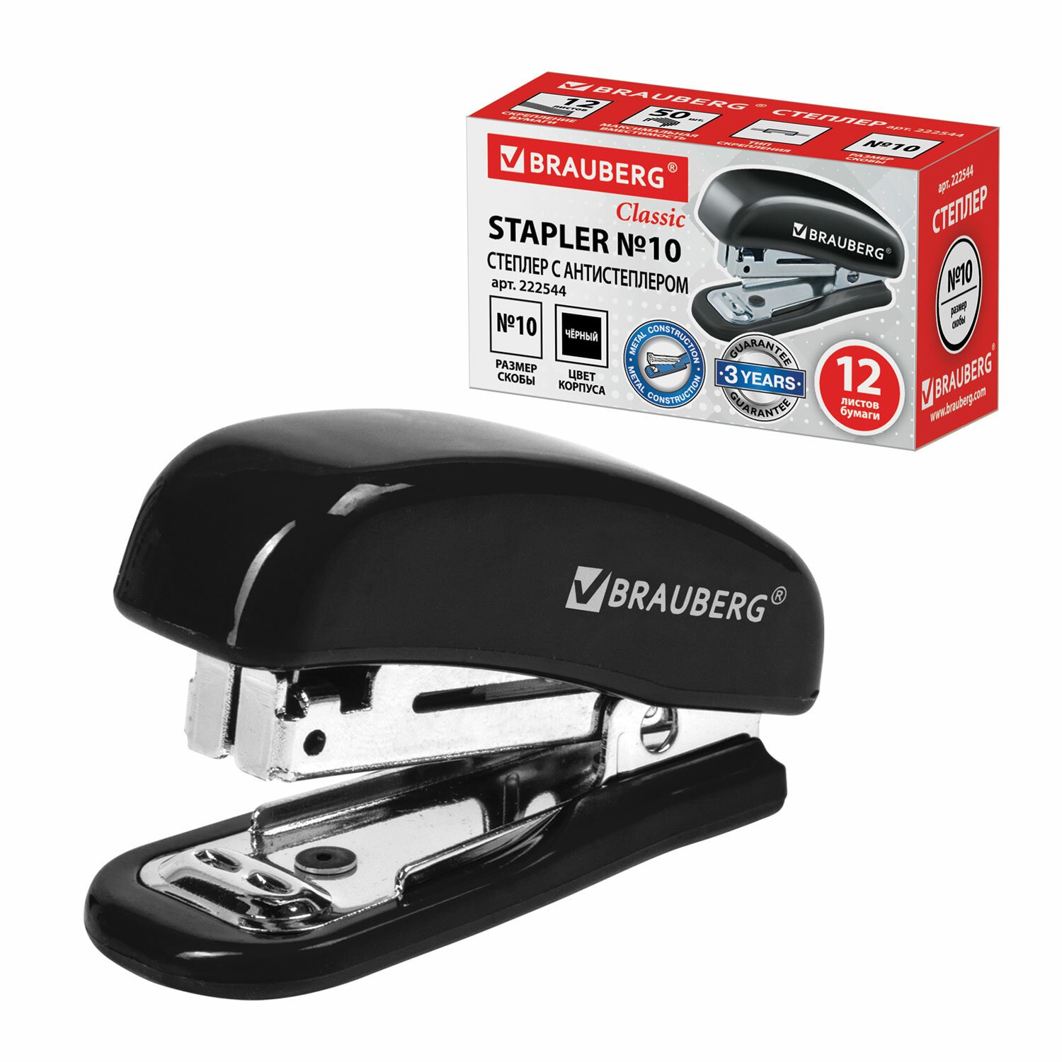 Степлер №10 BRAUBERG "Original", до 12 листов, с антистеплером, черный, 222529