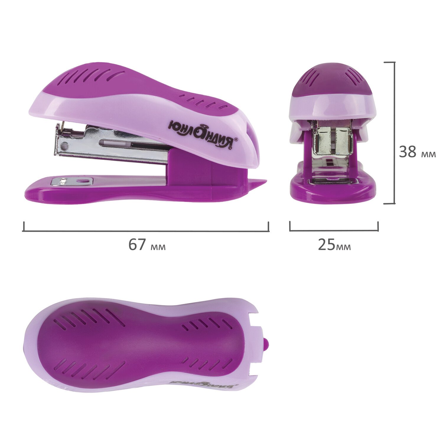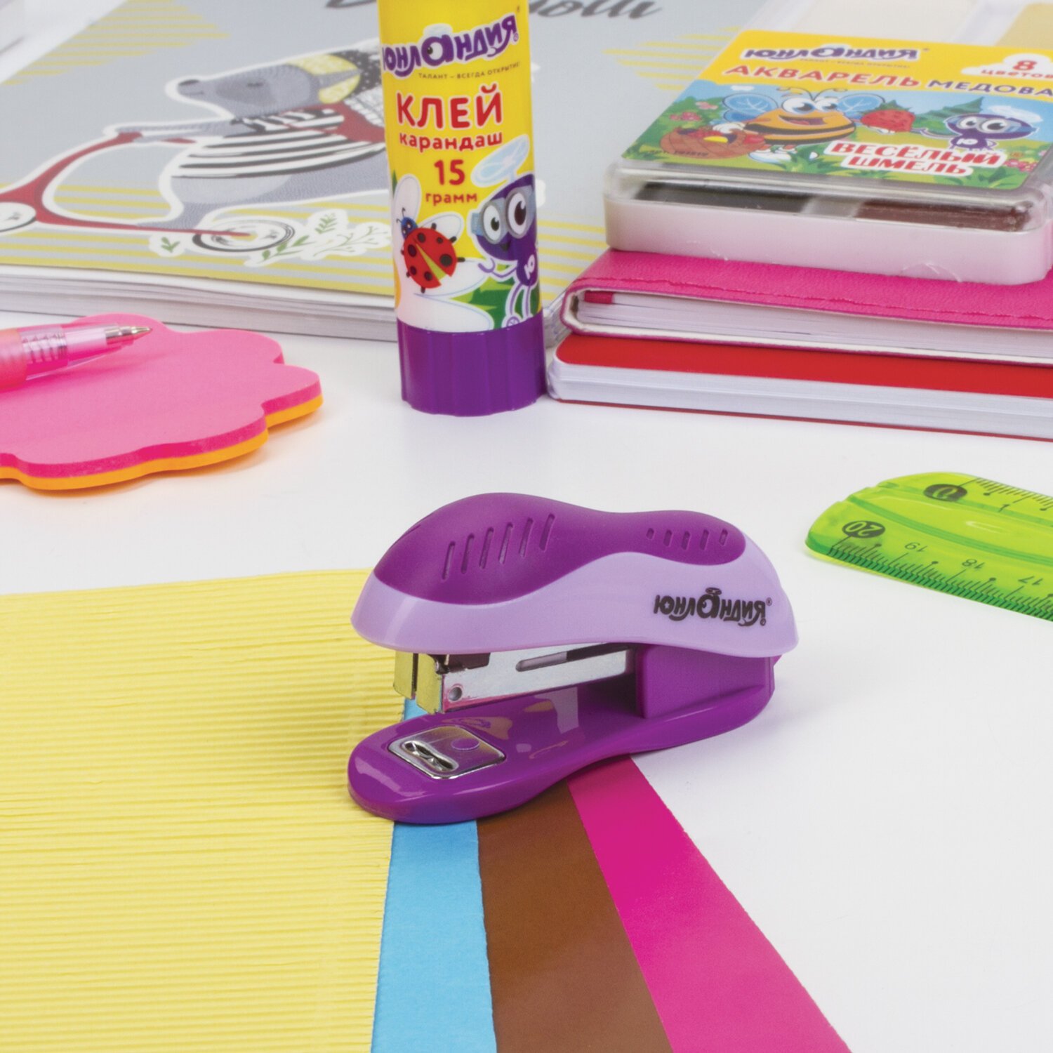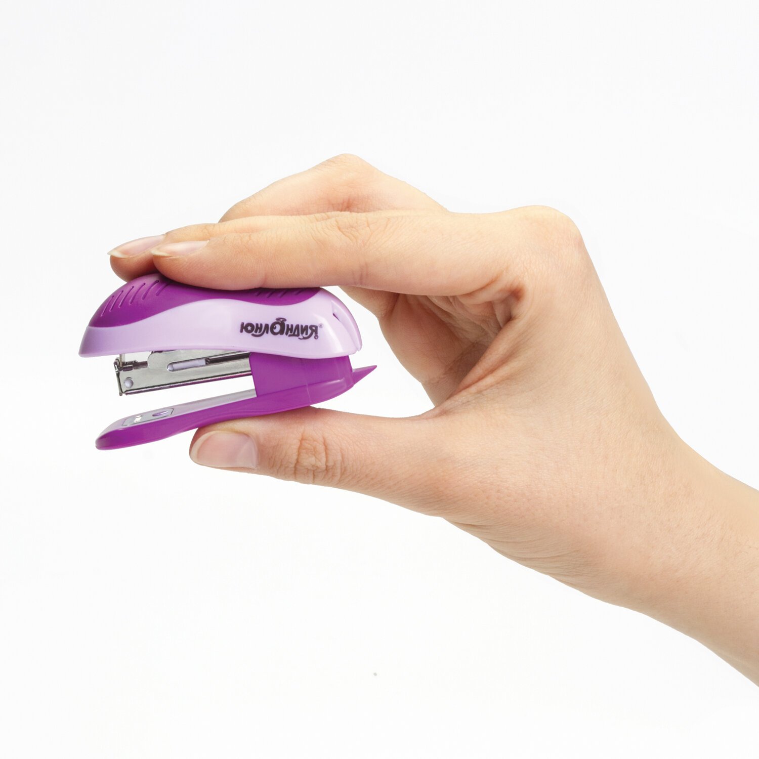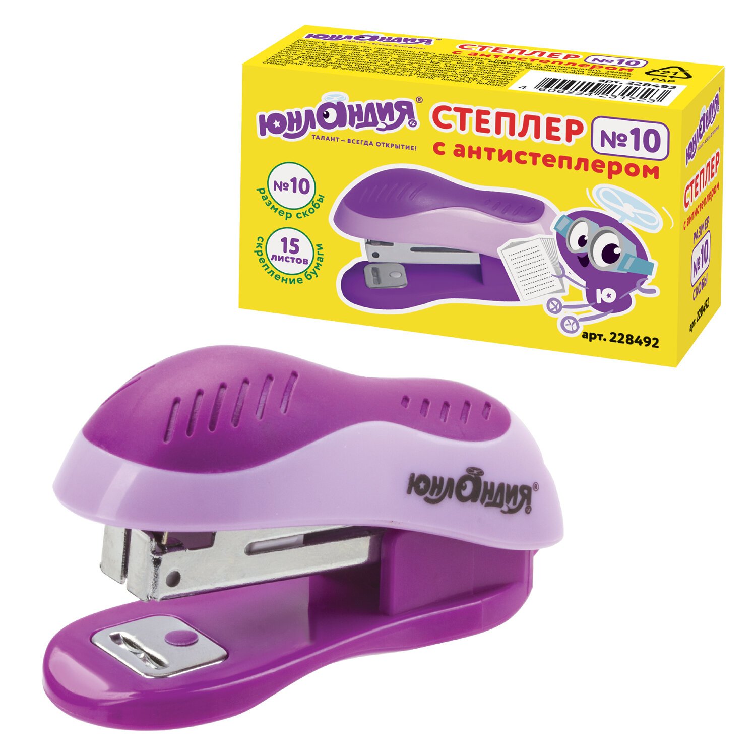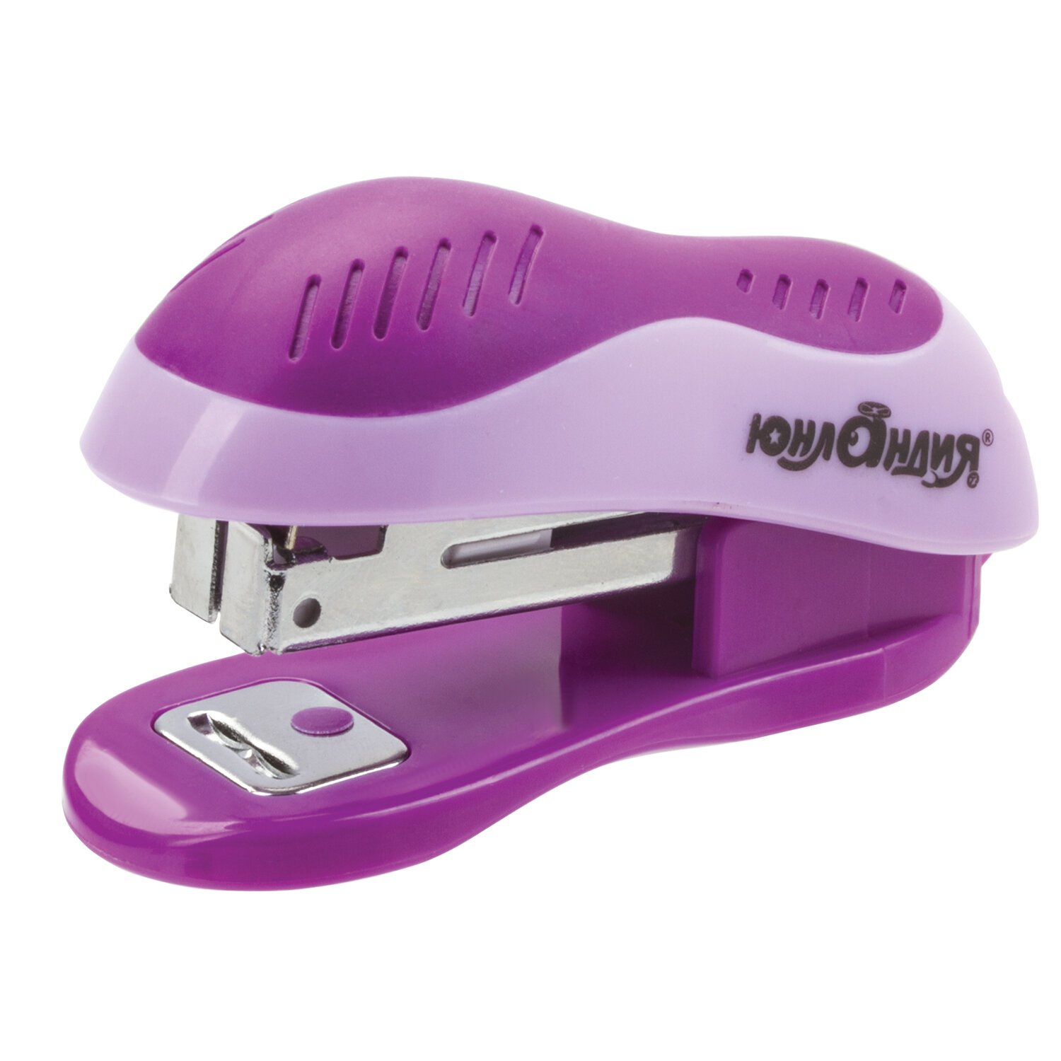 Степлер №10 МИНИ ЮНЛАНДИЯ, до 15 листов, с антистеплером, эргономичный, фиолетовый, 228492
