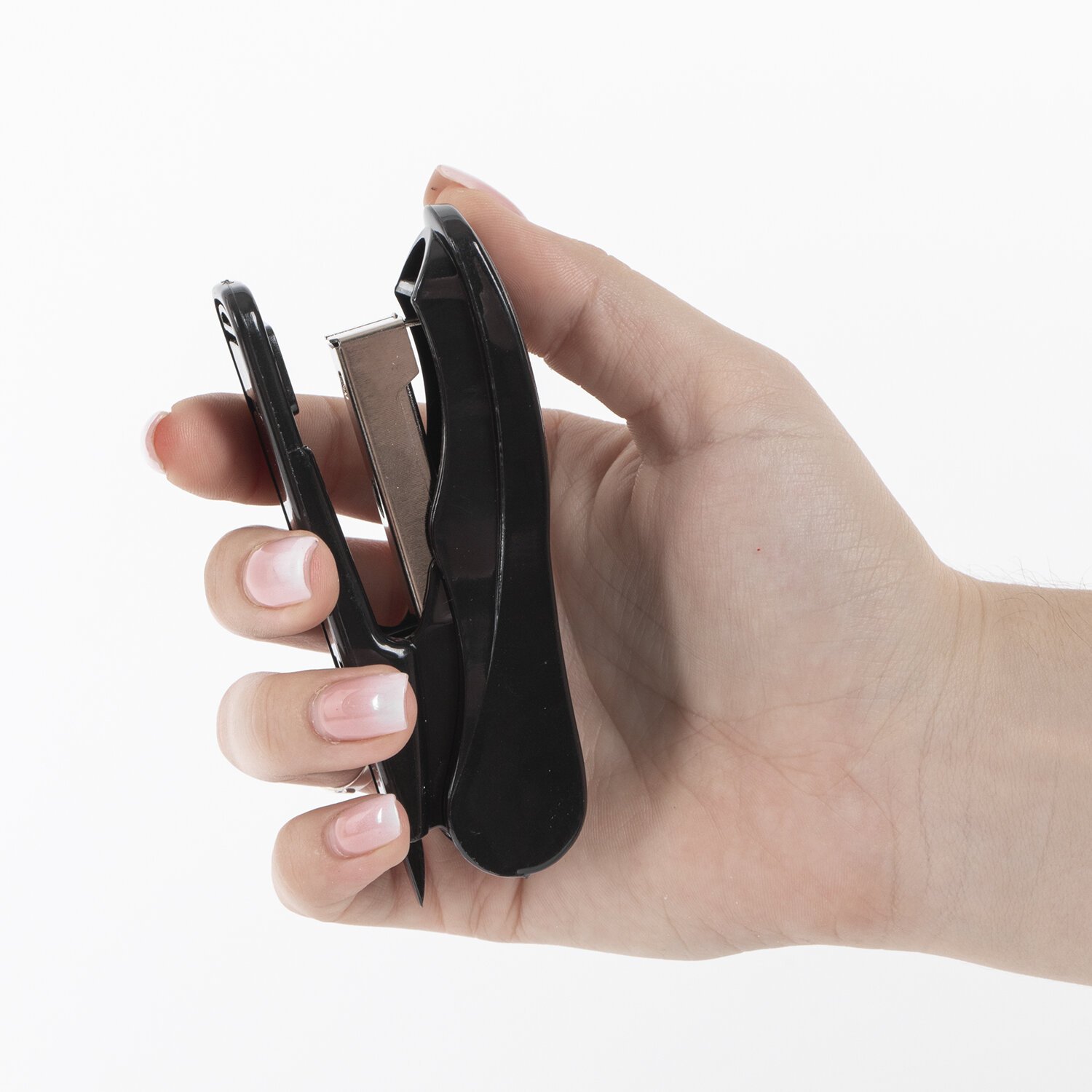 Степлер STAFF "EVERYDAY" с антистеплером в черном эргономичном пластиковом корпусе с металлическим механизмом cпособен скрепить до 12 листов. Подходящий размер скоб № 10. Виды сшивания: закрытый. Глубина закладки бумаги - 43 мм. Габариты: высота - 40 мм, ширина - 29 мм, длина - 100 мм. Благодаря компактным размерам удобен в использовании и занимает мало места на рабочем столе, а классический дизайн делает степлер подходящим к любому интерьеру. Продается в картонной упаковке.