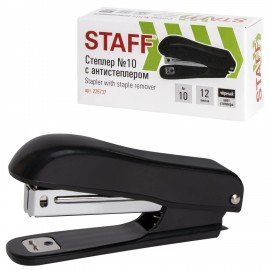 Степлер №10 STAFF "Profit", до 12 листов, с антистеплером, черный, 228737