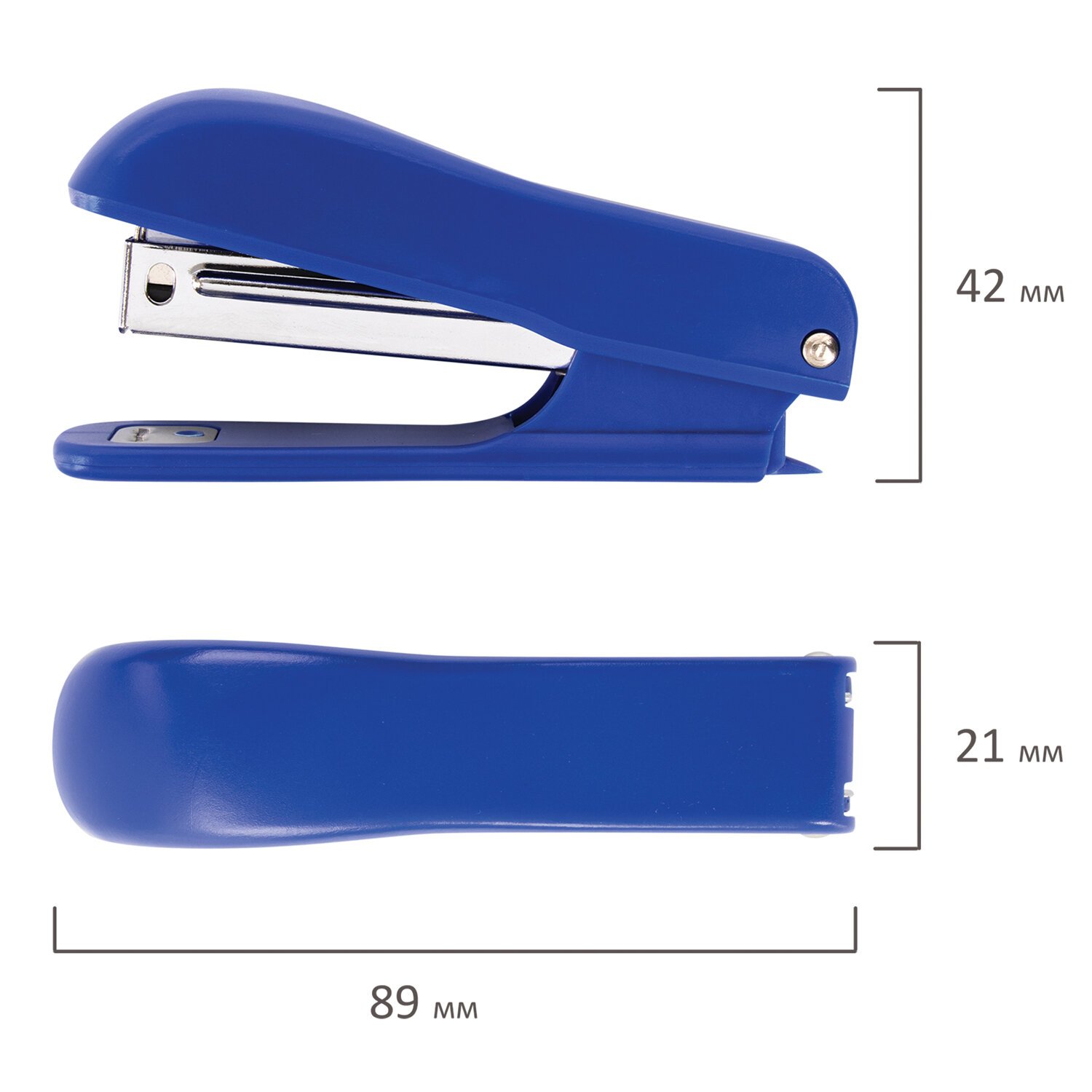 Степлер STAFF "Profit" с антистеплером в синем эргономичном пластиковом корпусе с металлическим механизмом cпособен скрепить до 12 листов. Подходящий размер скоб № 10. Виды сшивания: закрытый. Глубина закладки бумаги - 49 мм. Габариты: высота - 42 мм, ширина - 21 мм, длина - 89 мм. Благодаря компактным размерам удобен в использовании и занимает мало места на рабочем столе, а классический дизайн делает степлер подходящим к любому интерьеру. Продается в картонной упаковке.