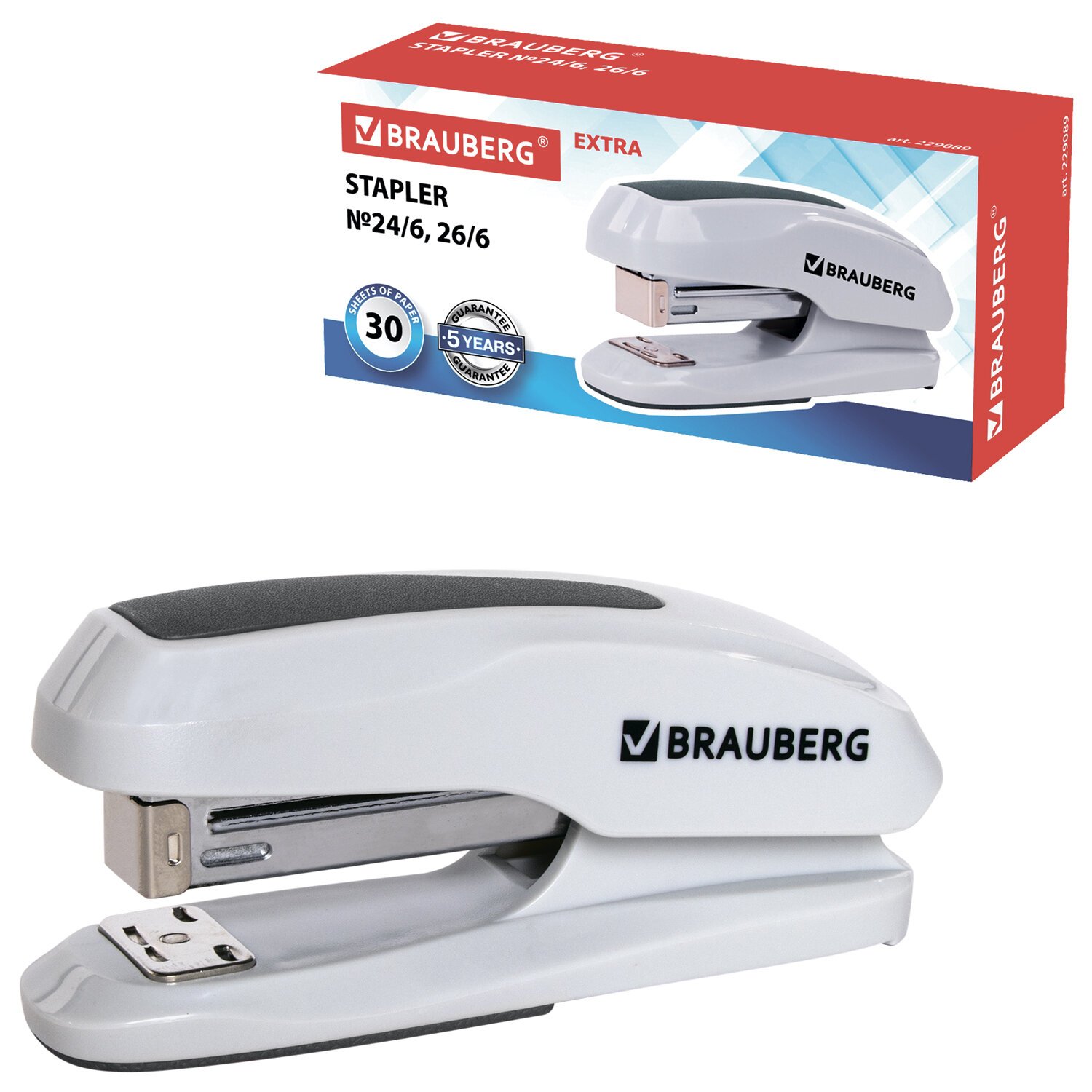 Степлер №24/6, 26/6 BRAUBERG "Extra", до 30 листов, серый, 229089