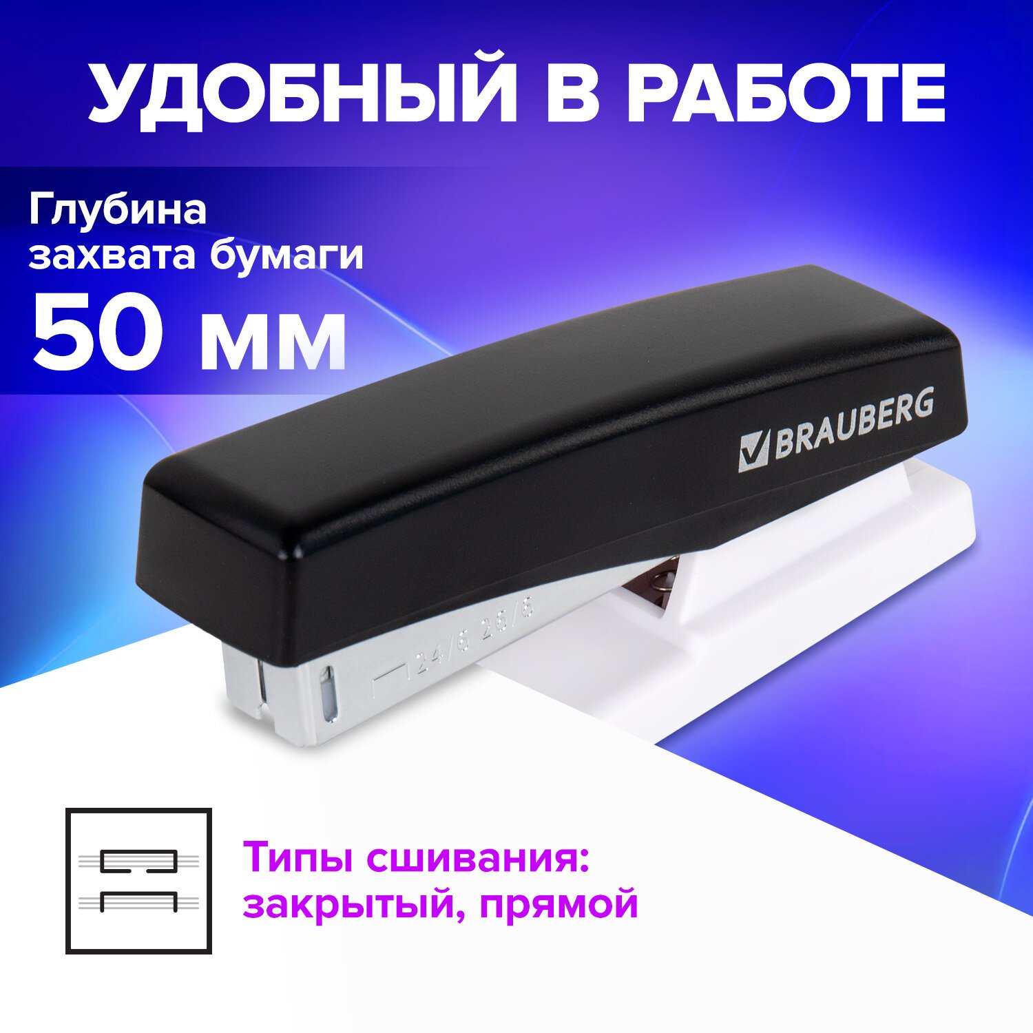 Степлер №24/6, 26/6 BRAUBERG "STYLE", до 25 листов, черный, 272747