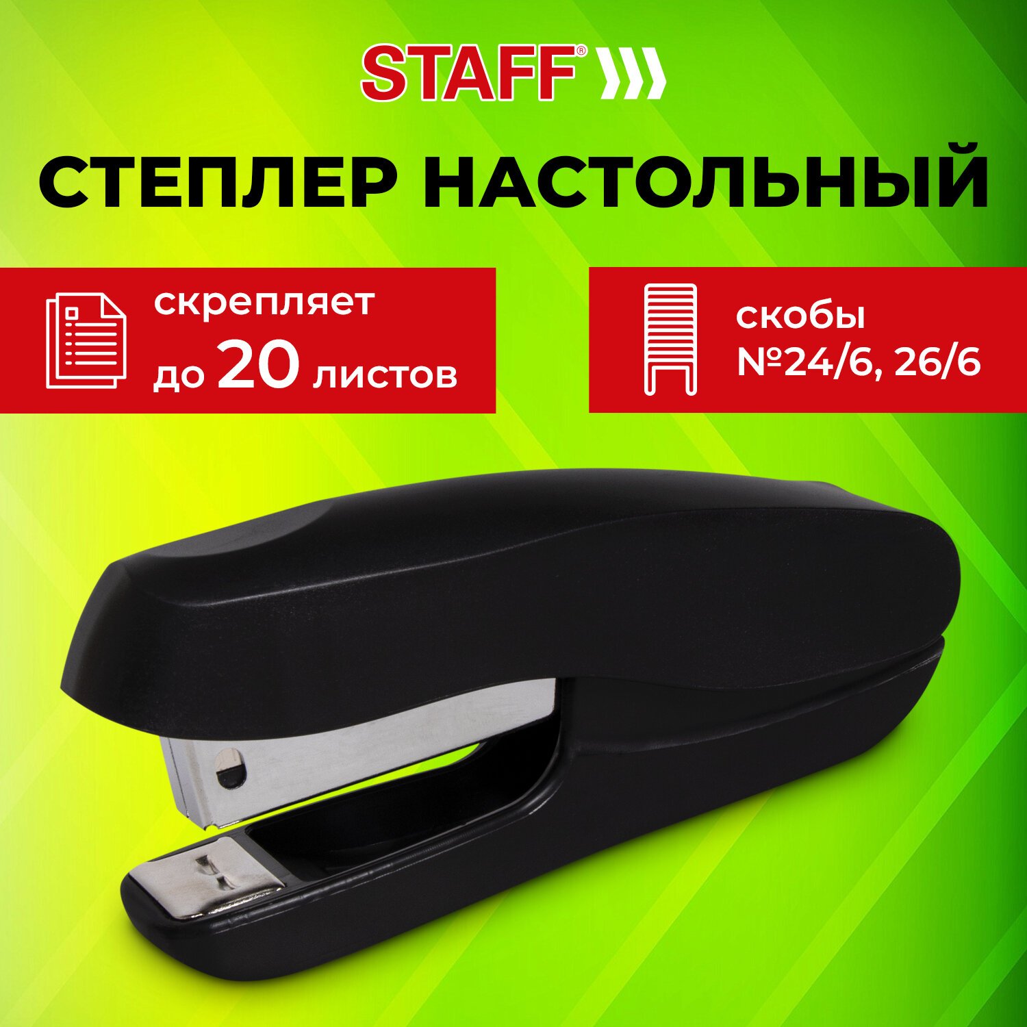 Степлер №24/6, 26/6 STAFF "EVERYDAY", до 20 листов, черный, 228739
