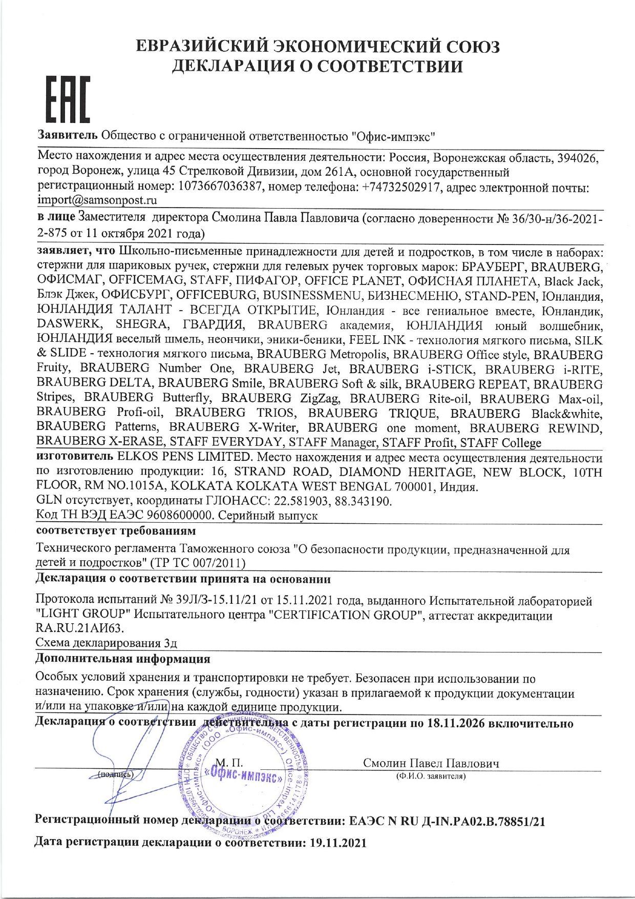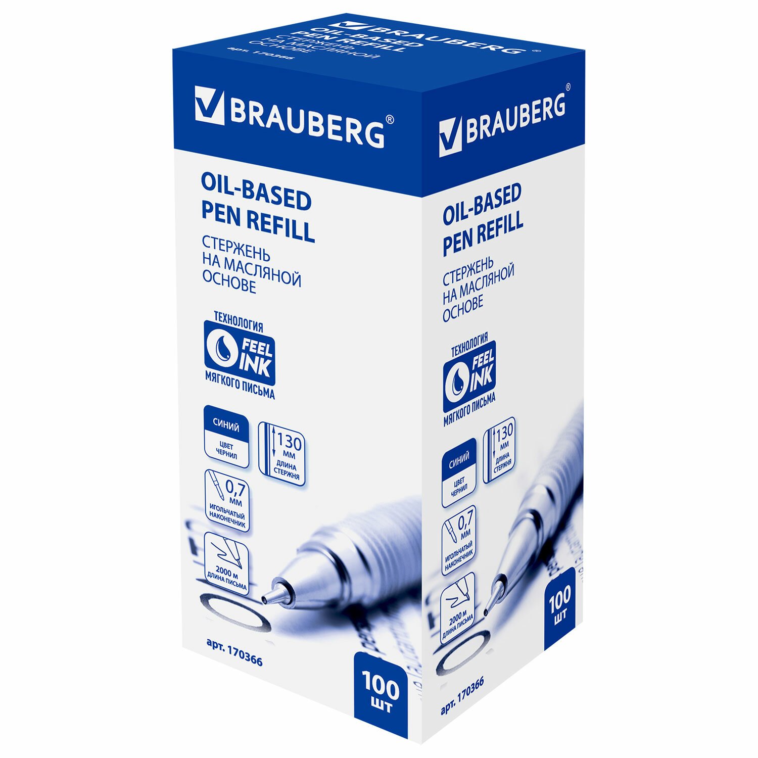 Стержень BRAUBERG с масляными чернилами обеспечивает ровное, комфортное письмо. Подходит для большинства ручек с откручивающимся носиком.