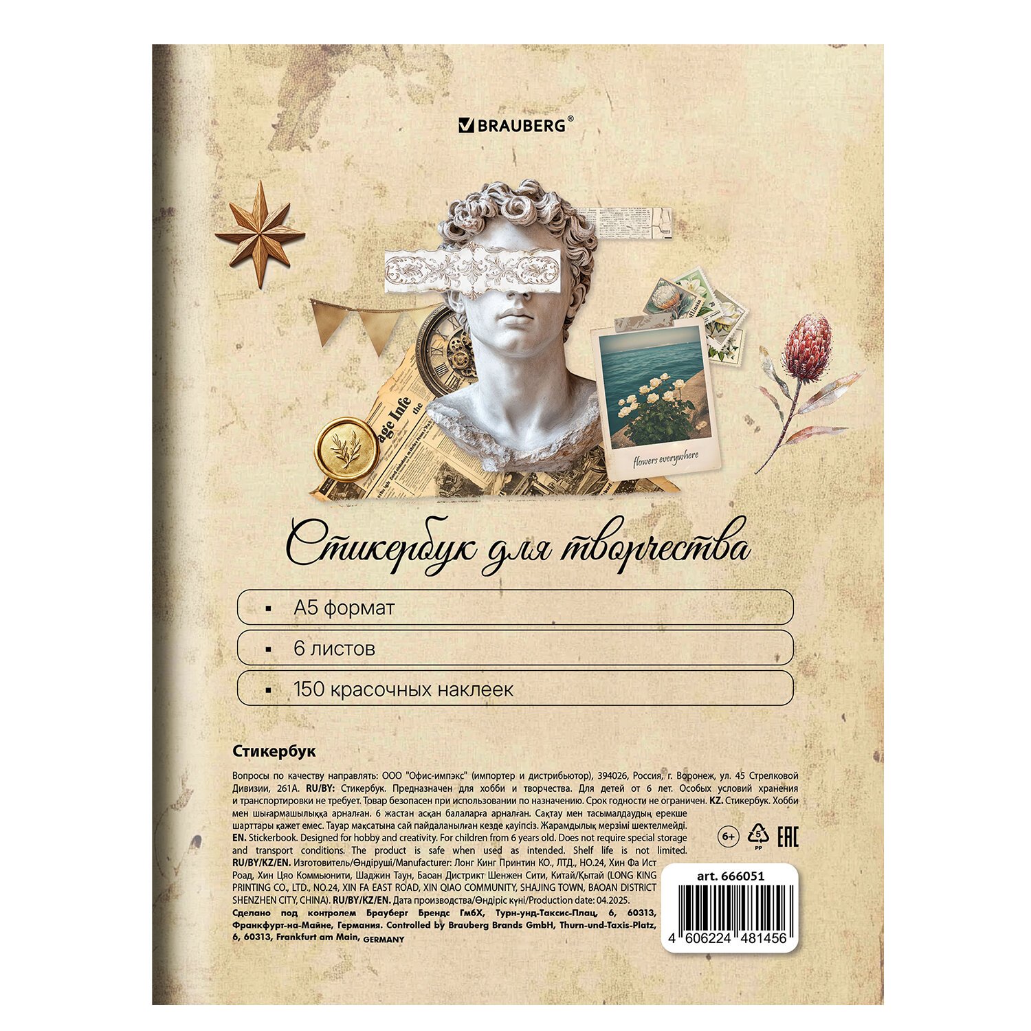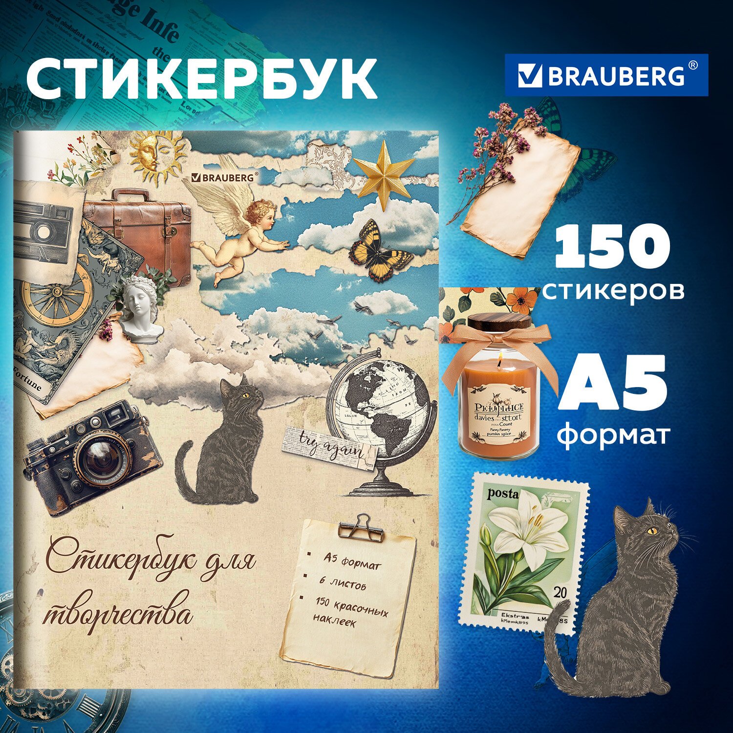 Стикербук для скрапбукинга А5 6л. 150 цветных стикеров, на скрепке, BRAUBERG, Эстетика, 666051
