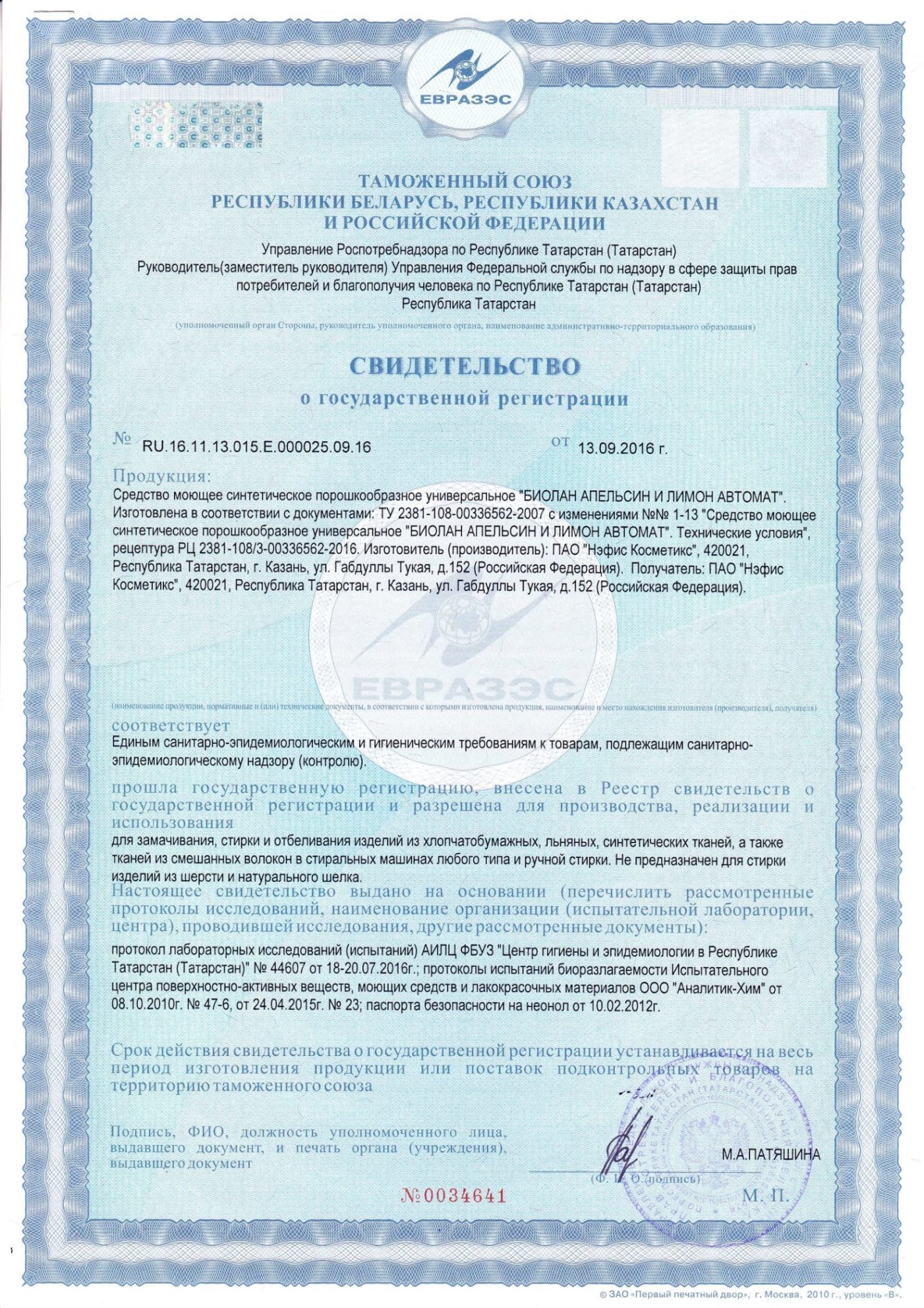 | Вид средства | порошок |