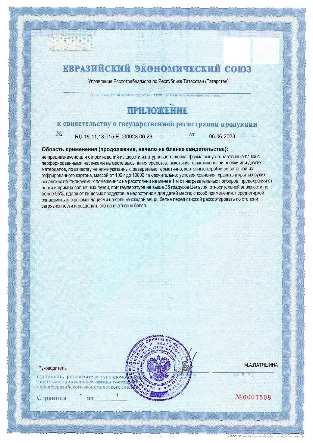 Порошок бережно отстирывает и сохраняет структуру волокон ткани, защищает нагревательный элемент стиральной машины от накипи. Рекомендован к использованию при пониженных температурах и коротких программах стирки.