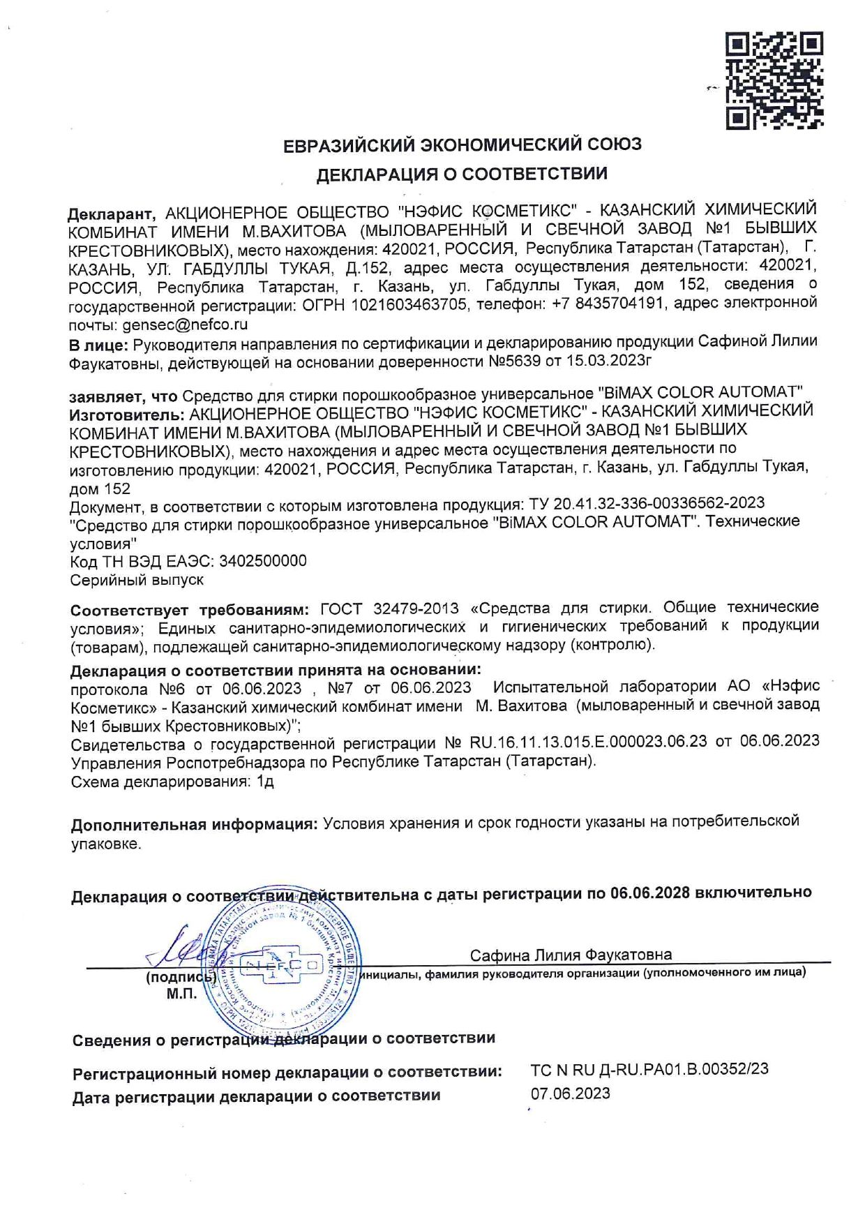 Стиральный порошок-автомат BIMAX Color разработан специально для удаления сложных пятен с изделий из окрашенных цветных тканей в автоматическом и ручном режимах стирки.