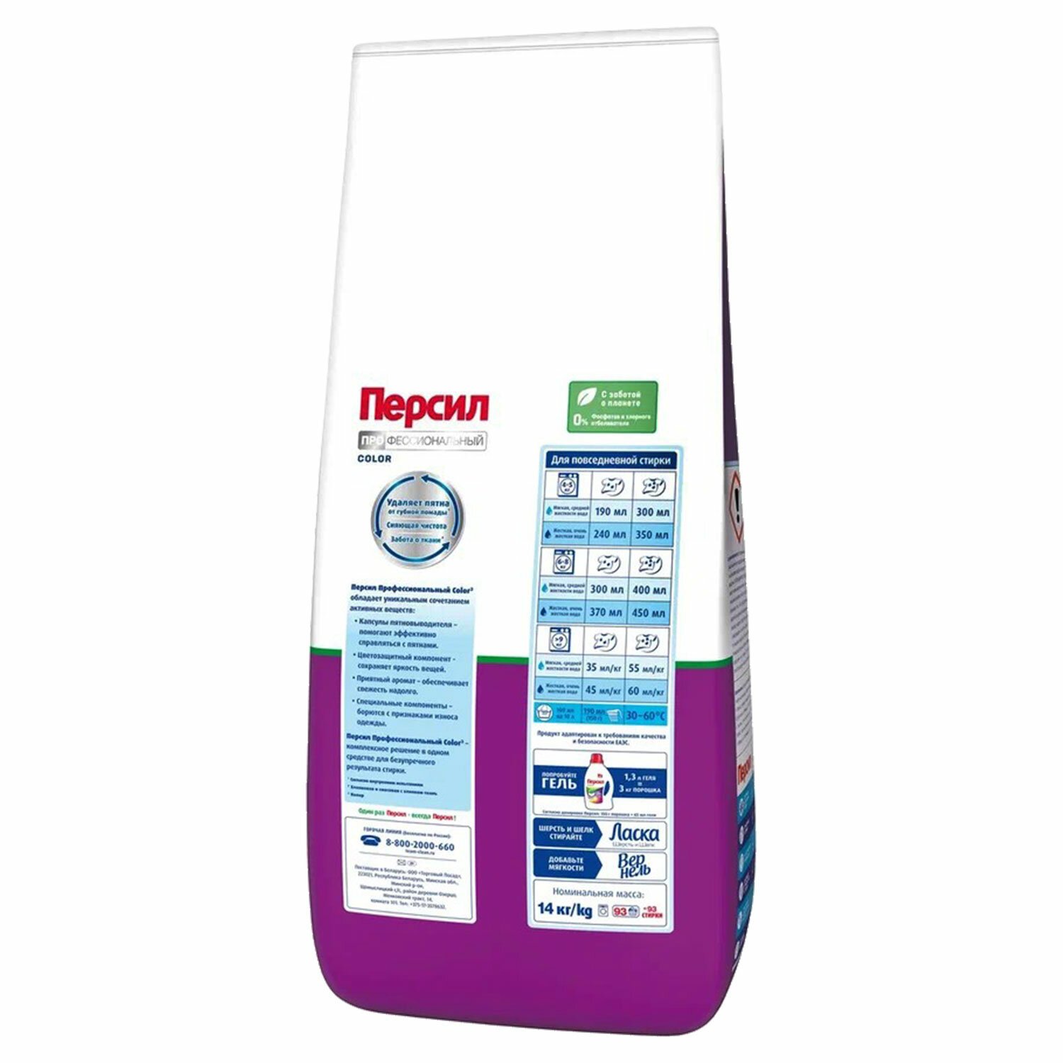 • Не содержит фосфатов и хлорного отбеливателя.