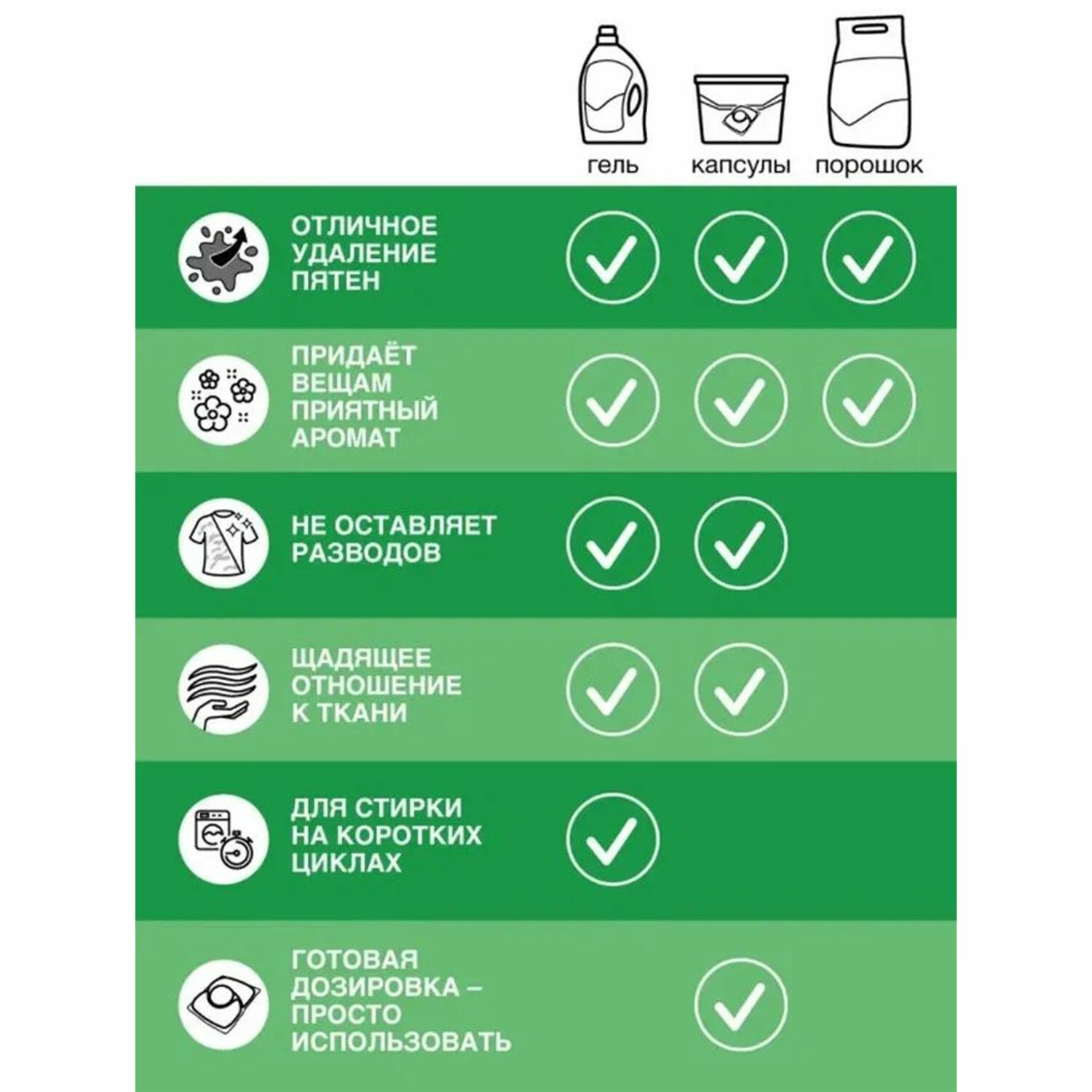 • Заботится о ткани и сохраняет яркость вещей.