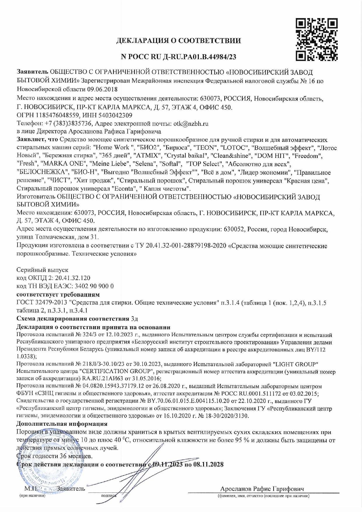 Состав: 15% и более, но менее 30% сульфаты; менее 5% АПАВ, карбонаты, отдушка.