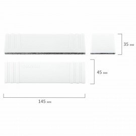 Выполнен из прочного пластика белого цвета в минималистичном дизайне. Обладает высоким качеством стирания. Стиратель прямоугольной формы со встроенным магнитом отлично крепится к любой магнитно-маркерной доске, что позволяет расположить его в любом месте рабочей поверхности доски. Размер - 45х145 мм.