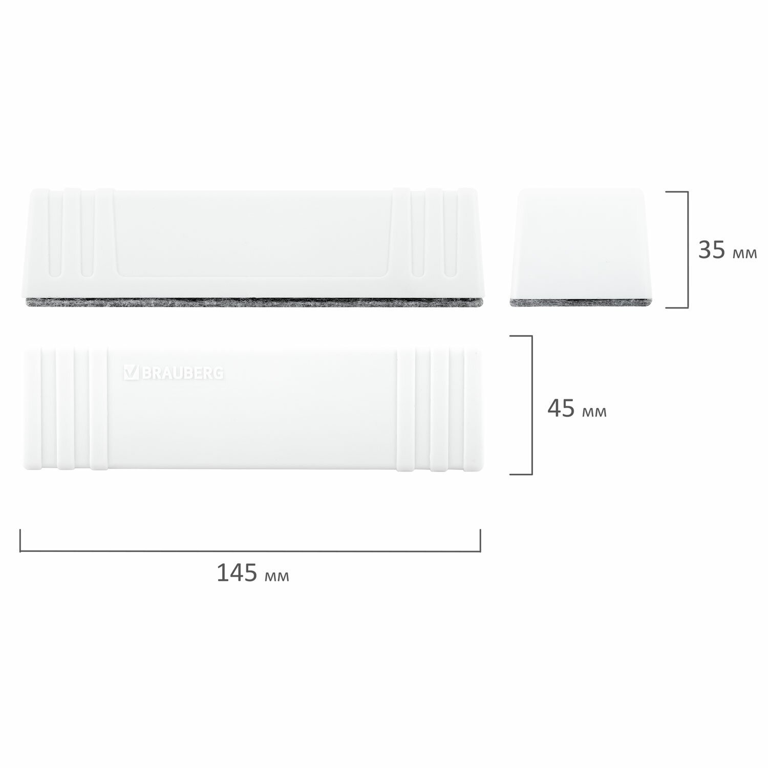 Стиратель магнитный для магнитно-маркерной доски (73х160 мм), BRAUBERG, РОССИЯ, 235528