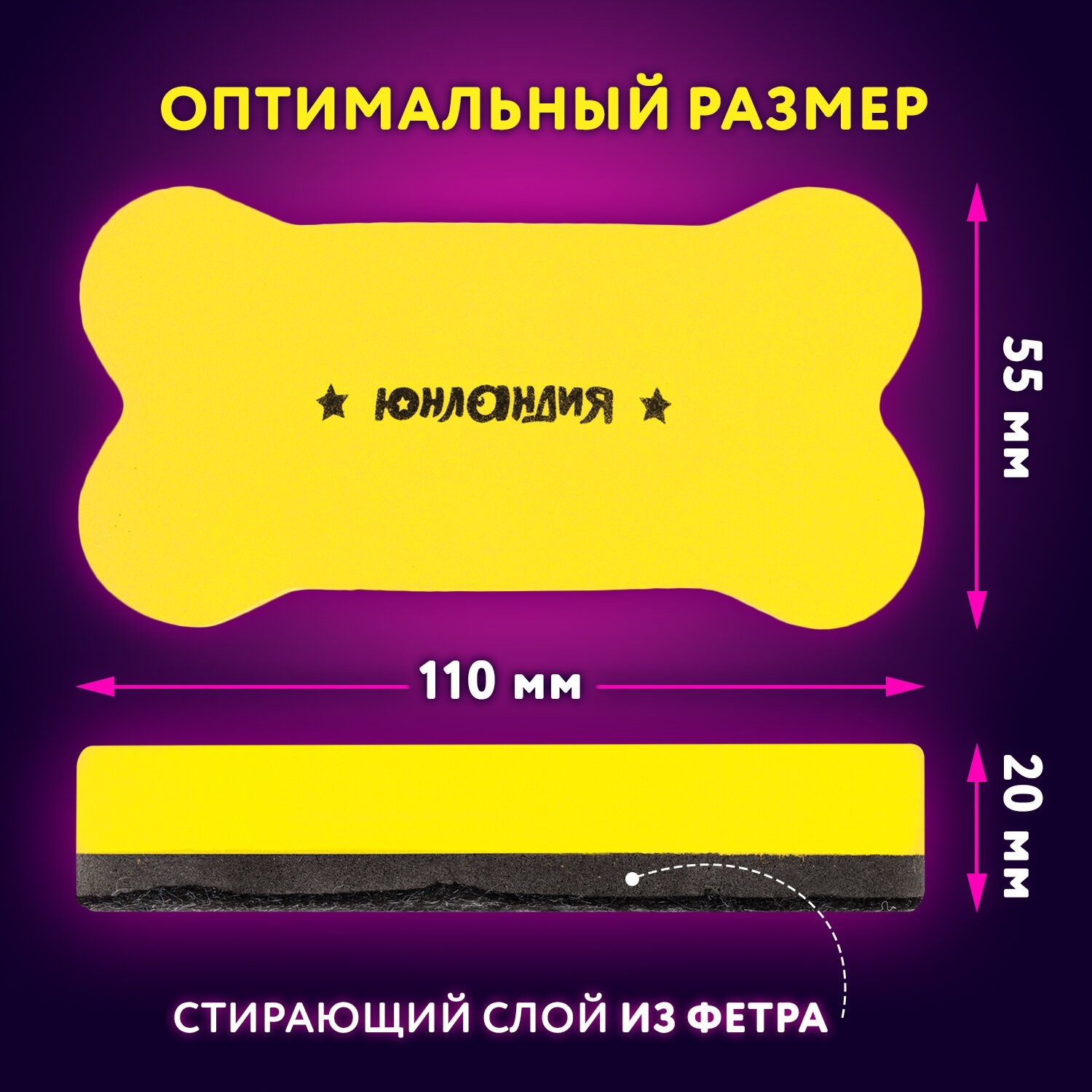 Стиратели магнитные ЮНЛАНДИЯ предназначены для стирания сухим способом надписей, сделанных маркером, с белых досок.