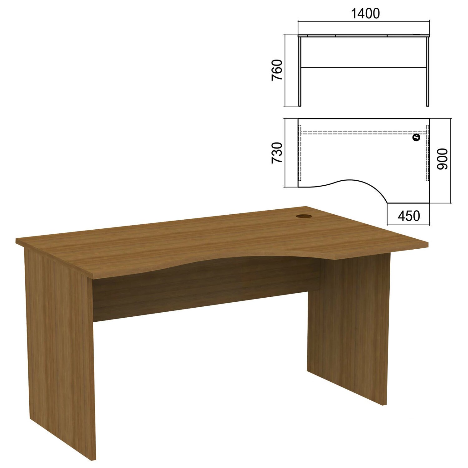 Стол эргономичный "Арго", 1400х900х760 мм, правый, орех (КОМПЛЕКТ)
