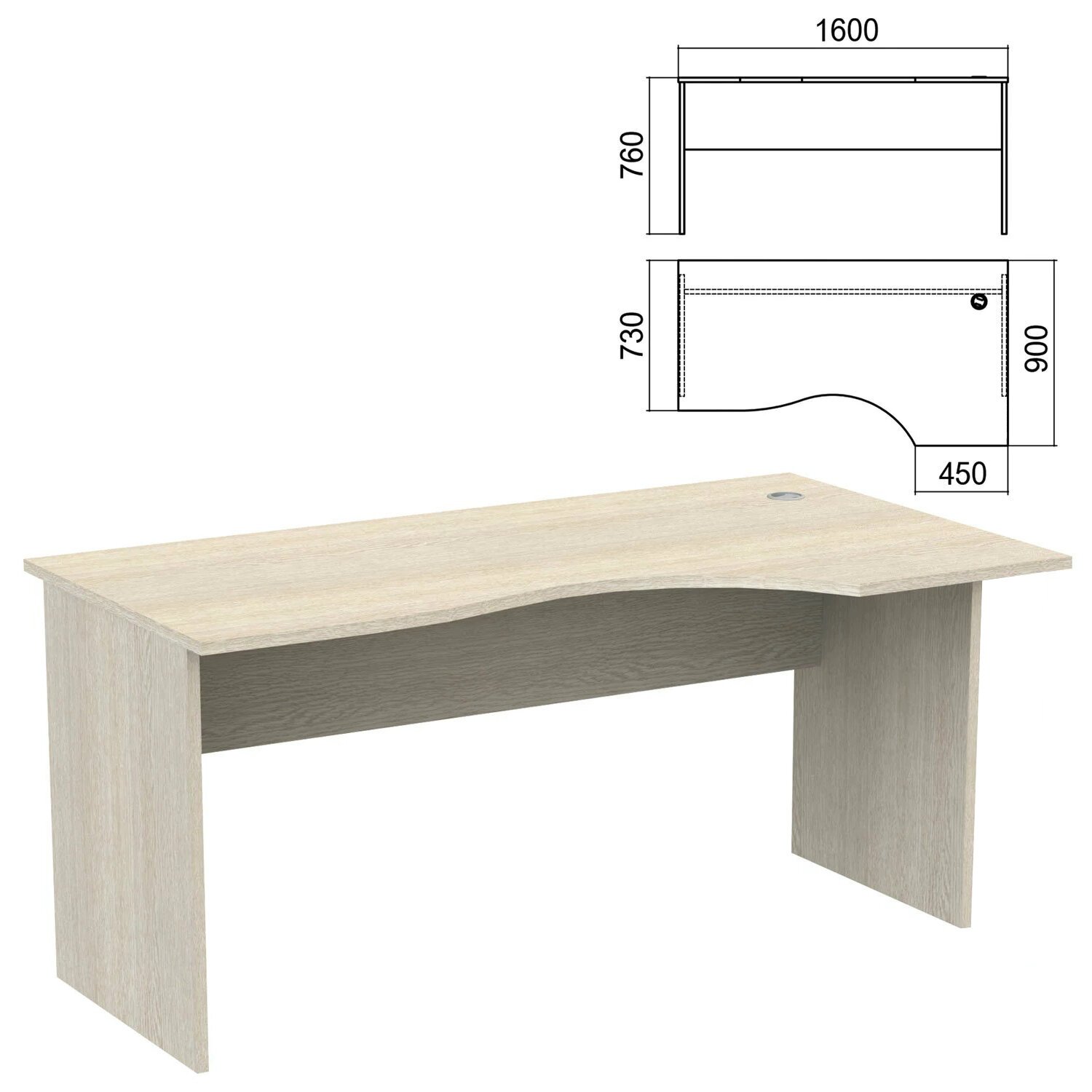 Стол эргономичный "Арго", 1600х900х760 мм, правый, ясень шимо (КОМПЛЕКТ)
