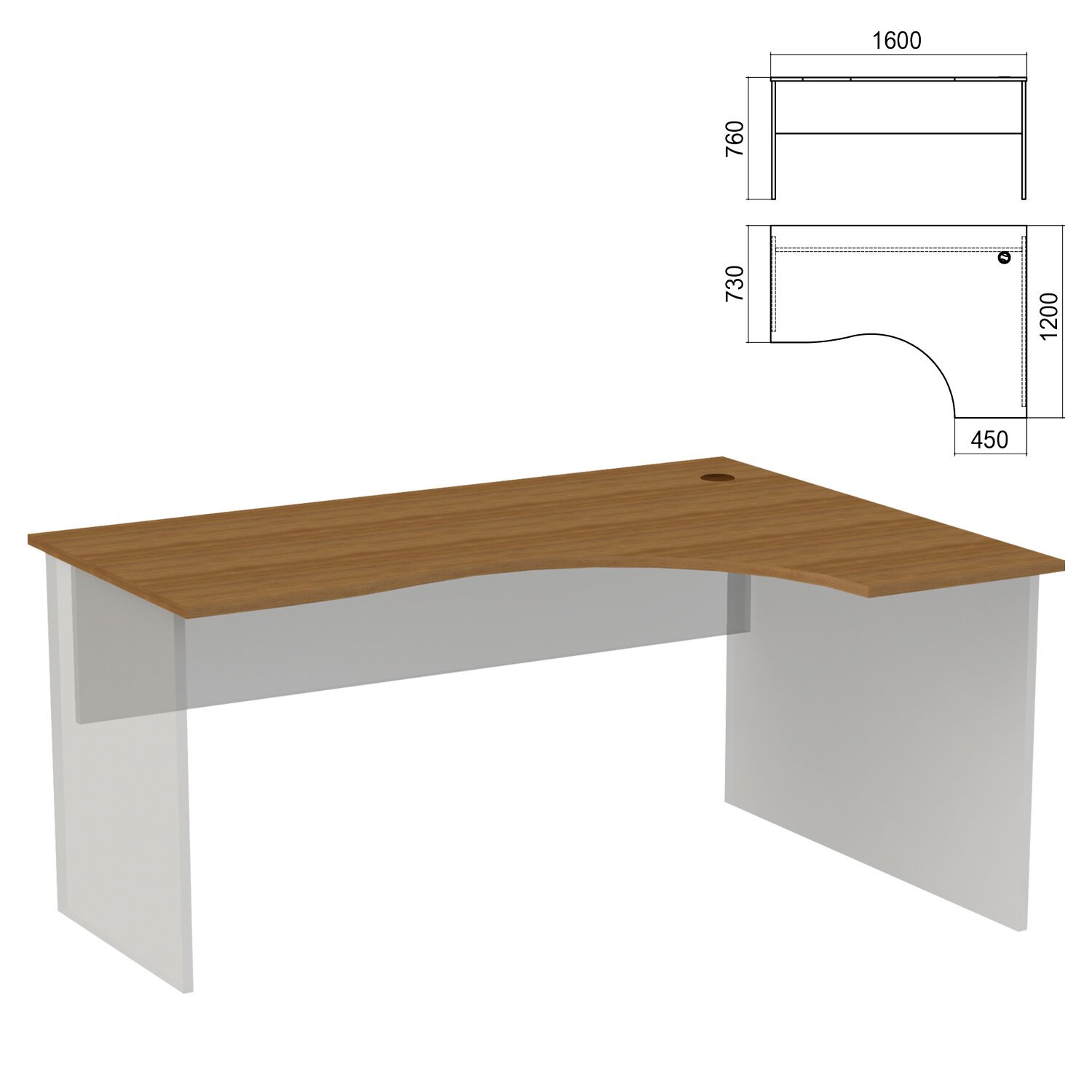 Стол эргономичный ЧАСТЬ 1 "Арго", 1600х1200х760 мм, правый, орех