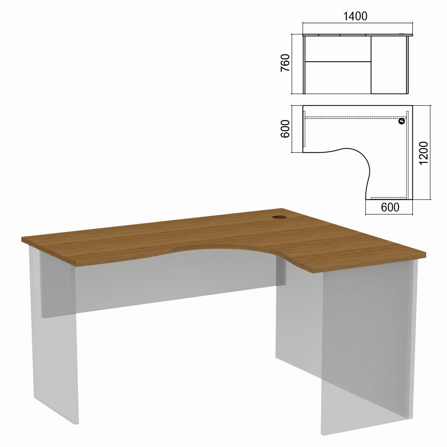 Стол компактный ЧАСТЬ 1 "Арго", 1400х1200х760 мм, правый, орех