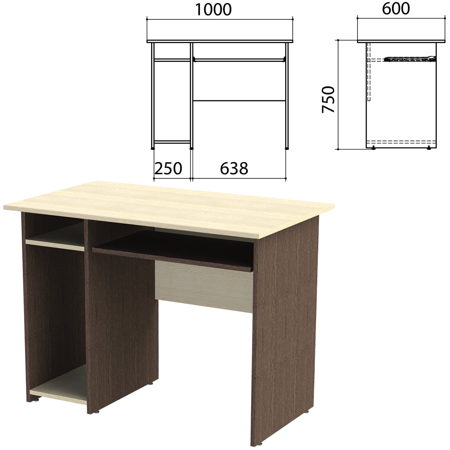 Стол компьютерный "Канц", 1000х600х750 мм, с тумбой, цвет венге/дуб молочный (КОМПЛЕКТ)