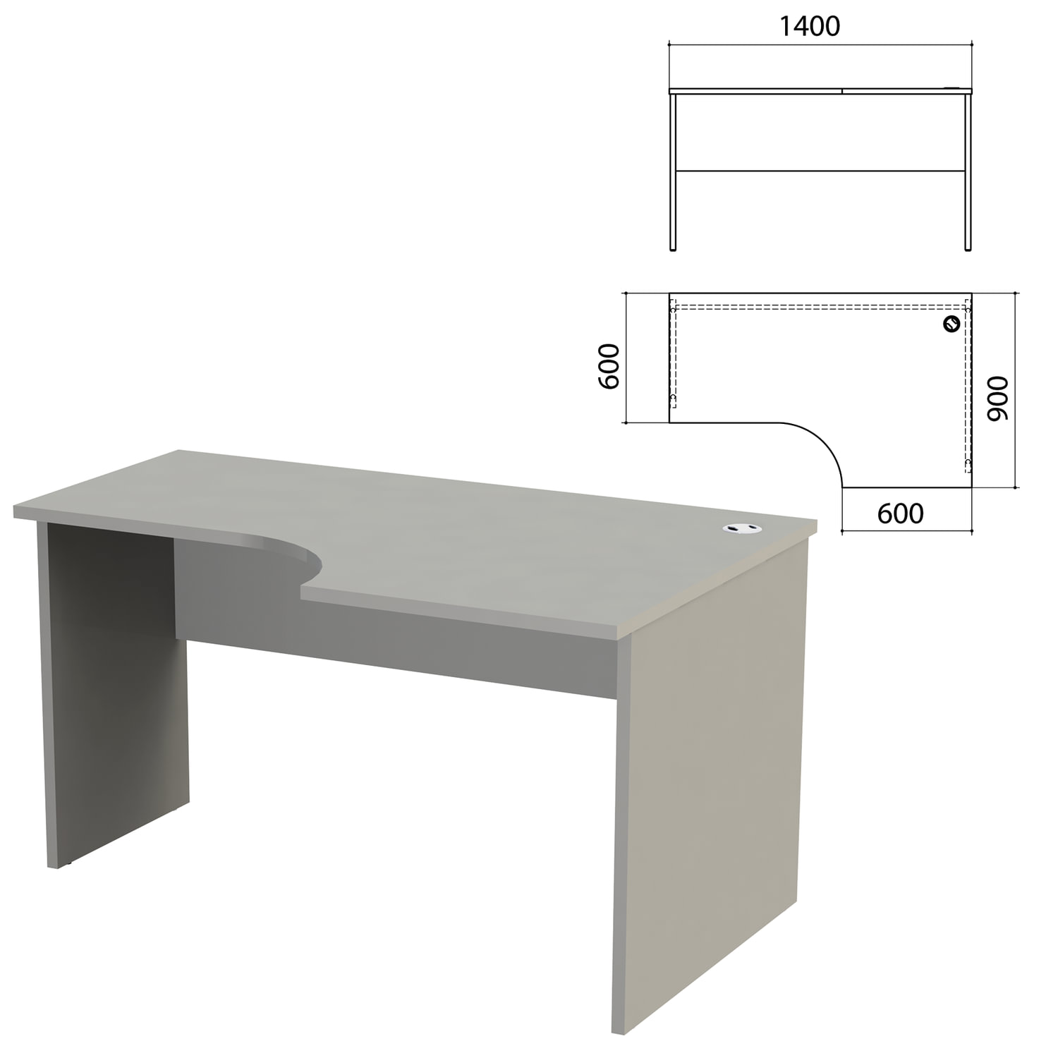 Стол письменный эргономичный "Этюд", 1400х900х750 мм, правый, серый (КОМПЛЕКТ)