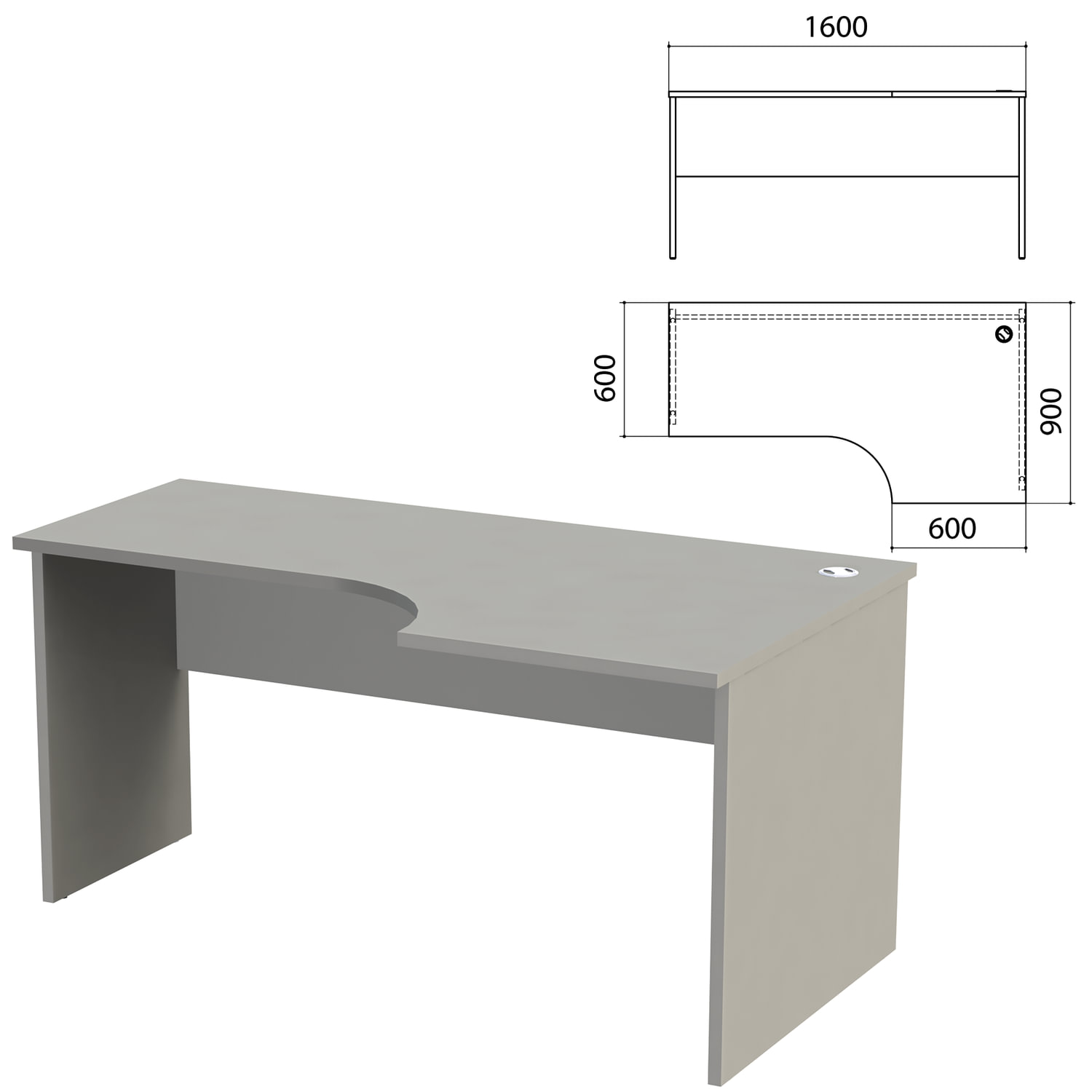 Стол письменный эргономичный "Этюд", 1600х900х750 мм, правый, серый (КОМПЛЕКТ)