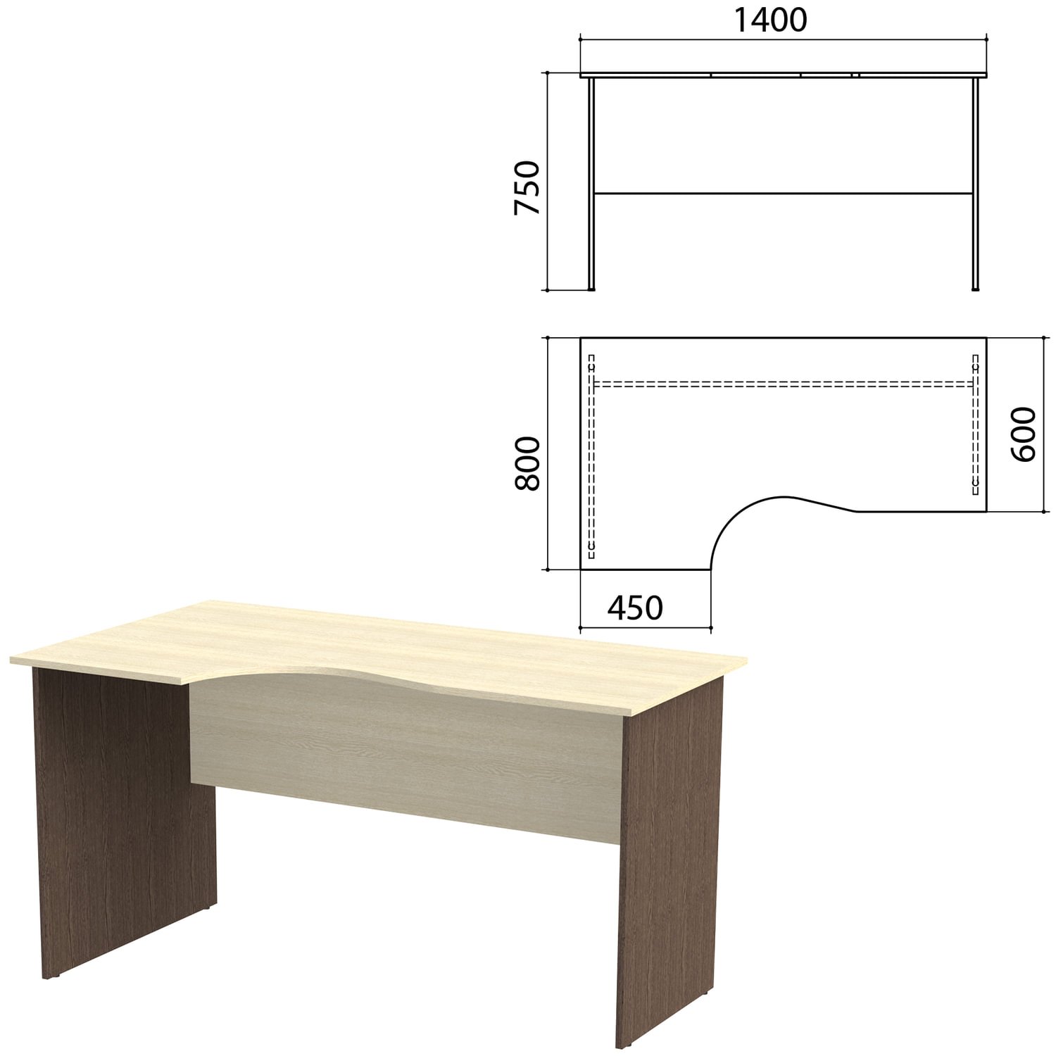 Стол письменный эргономичный "Канц", 1400х800х750 мм, левый, цвет венге/дуб молочный (КОМПЛЕКТ)