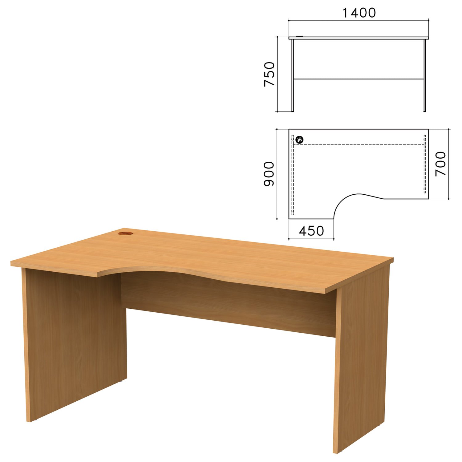 Стол письменный эргономичный "Монолит", 1400х900х750 мм, левый, цвет бук бавария, СМ5.1
