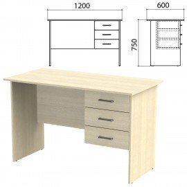 Стол письменный "Канц", 1200х600х750 мм, тумба 3 ящика, цвет дуб молочный (КОМПЛЕКТ)