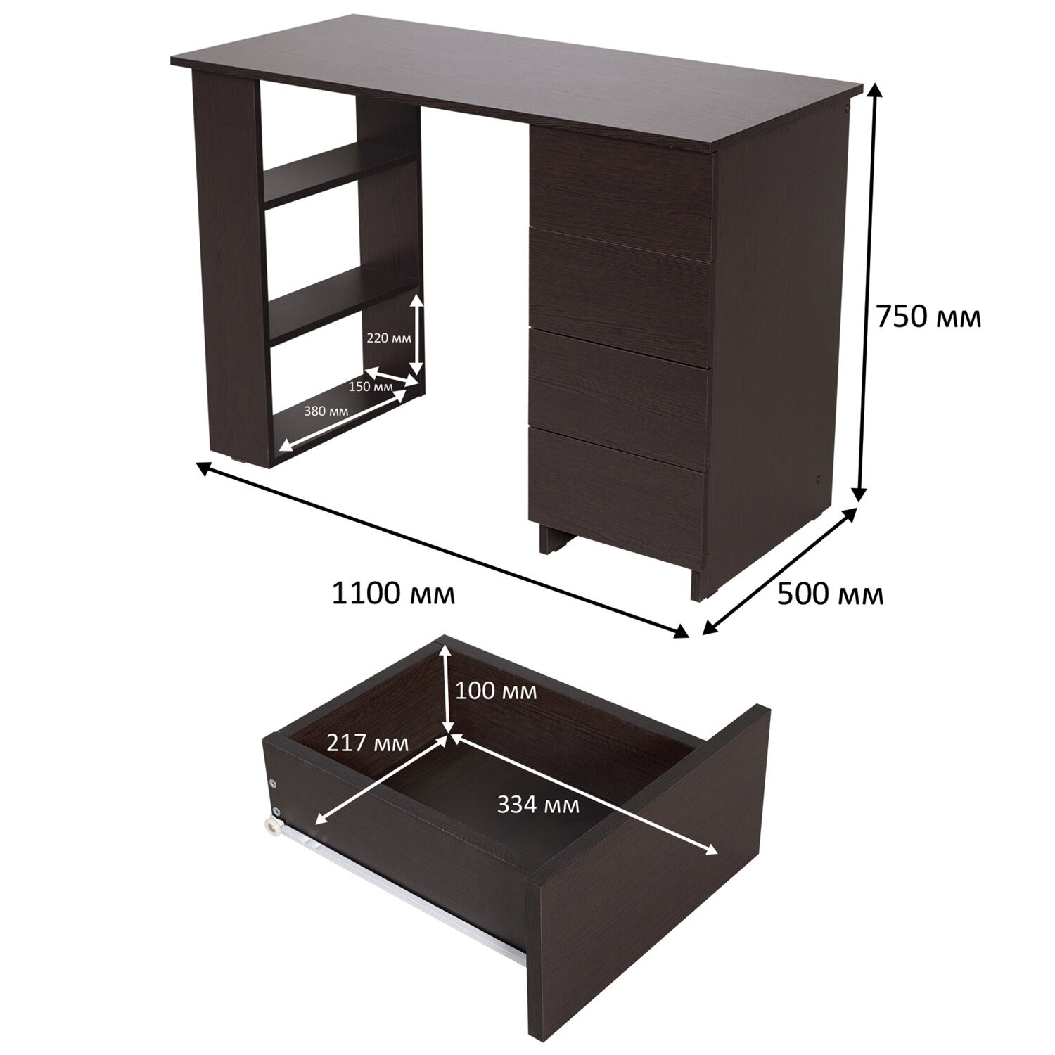 Стол письменный/компьютерный BRABIX "Scandi CD-016", 1100х500х750мм, 4 ящика, венге, 641893, ЦБ013707-3