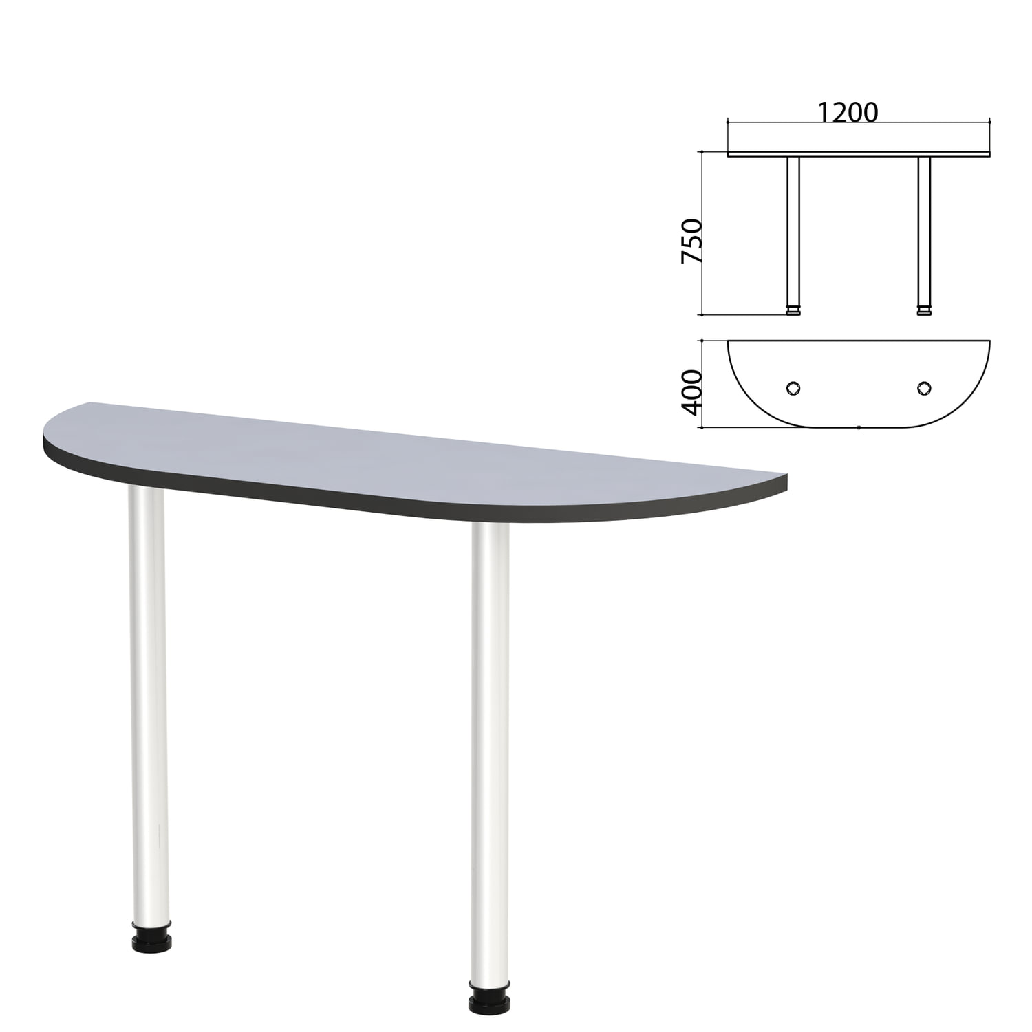 Стол приставной полукруг "Монолит", 1200х400х750 мм, цвет серый (КОМПЛЕКТ)