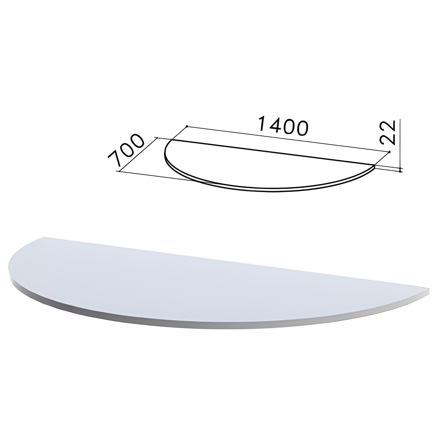 Стол приставной полукруг "Монолит", 1400х700х750 мм, БЕЗ ОПОР (640137), цвет серый, ПМ35.11