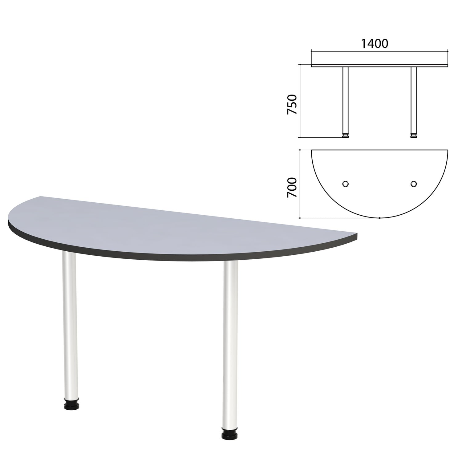 Стол приставной полукруг "Монолит", 1400х700х750 мм, цвет серый (КОМПЛЕКТ)