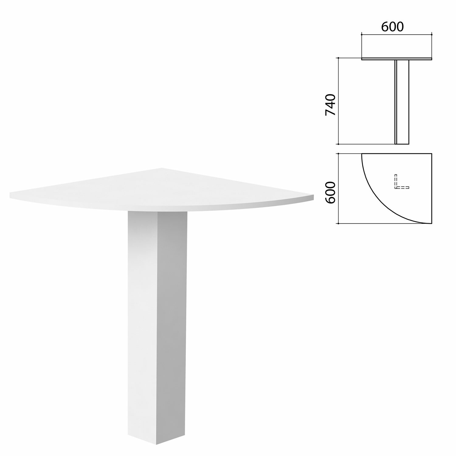Стол приставной угловой "Бюджет", 600х600х740 мм, белый, 402664-290