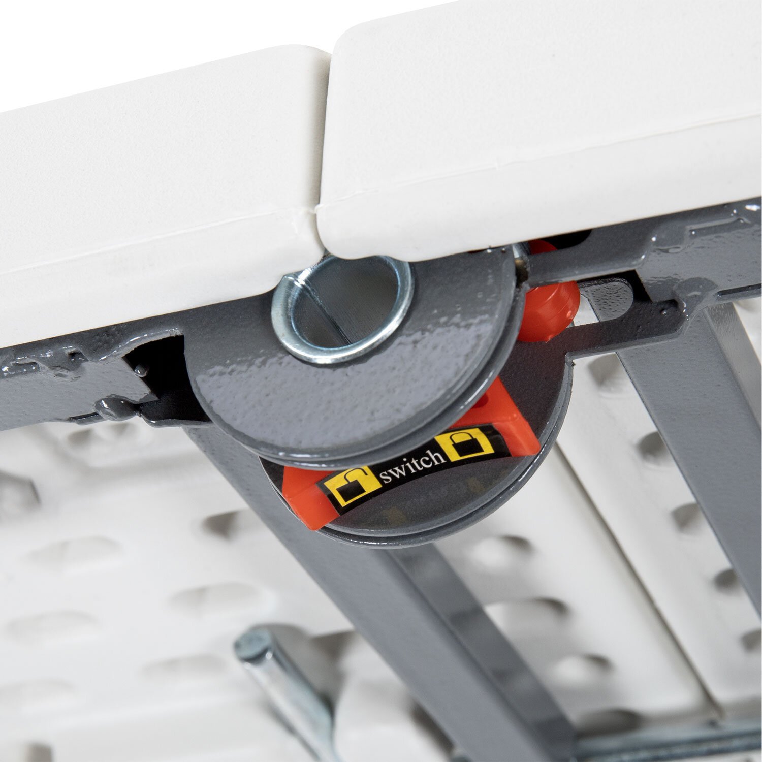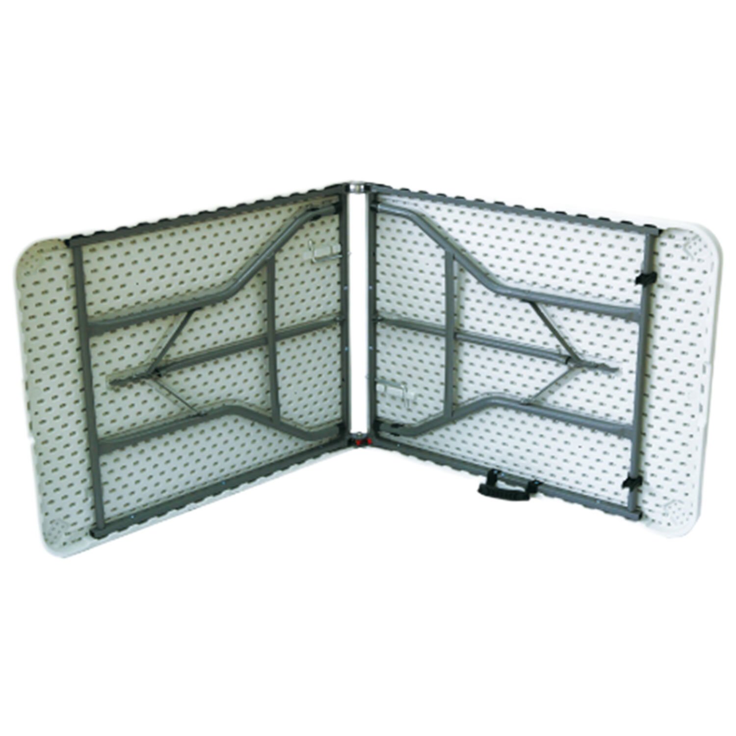 - Прочный стальной каркас с надёжной фиксацией защищён от самопроизвольного складывания, благодаря чему стол стабилен даже при максимальной нагрузке.