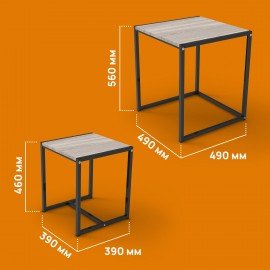 Стол журнальный "Терса", 490х490х560/390х390х460 мм, КОМПЛЕКТ 2 шт., металл/ЛДСП ясень шимо темный