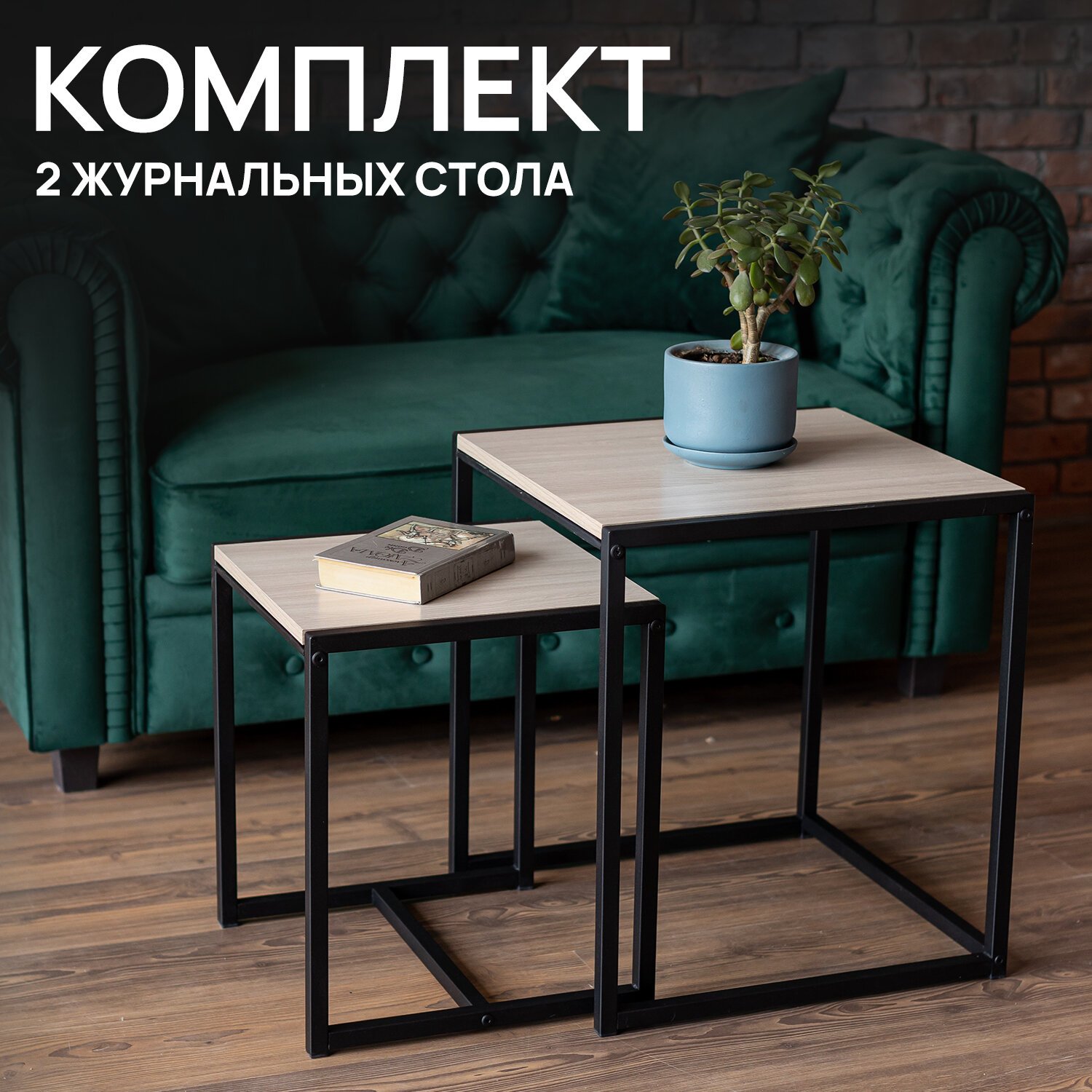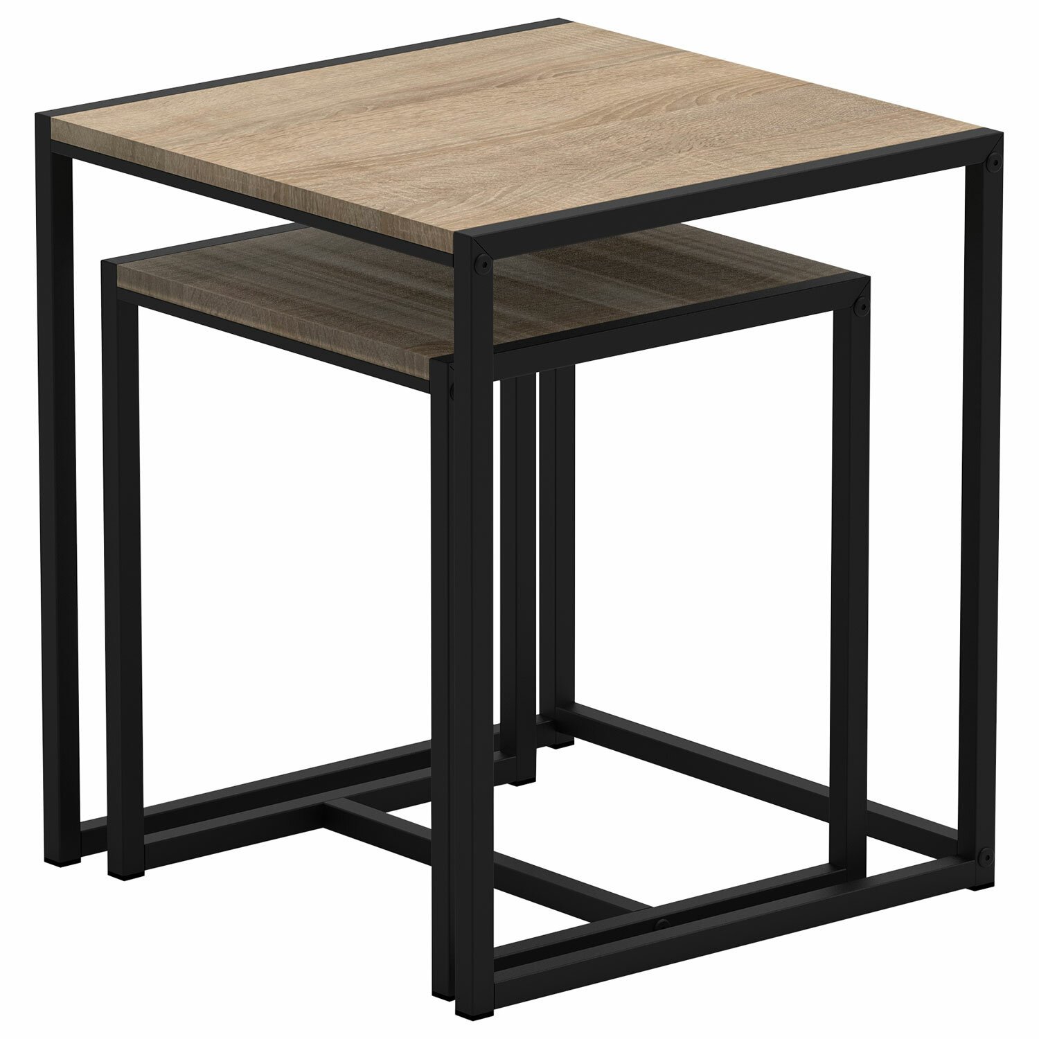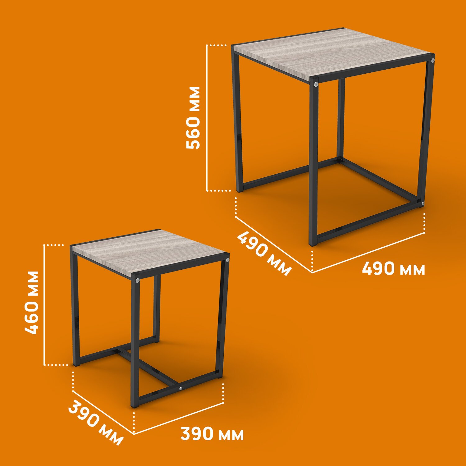 Стол журнальный "Терса", 490х490х560/390х390х460 мм, КОМПЛЕКТ 2 шт., металл/ЛДСП ясень шимо светлый