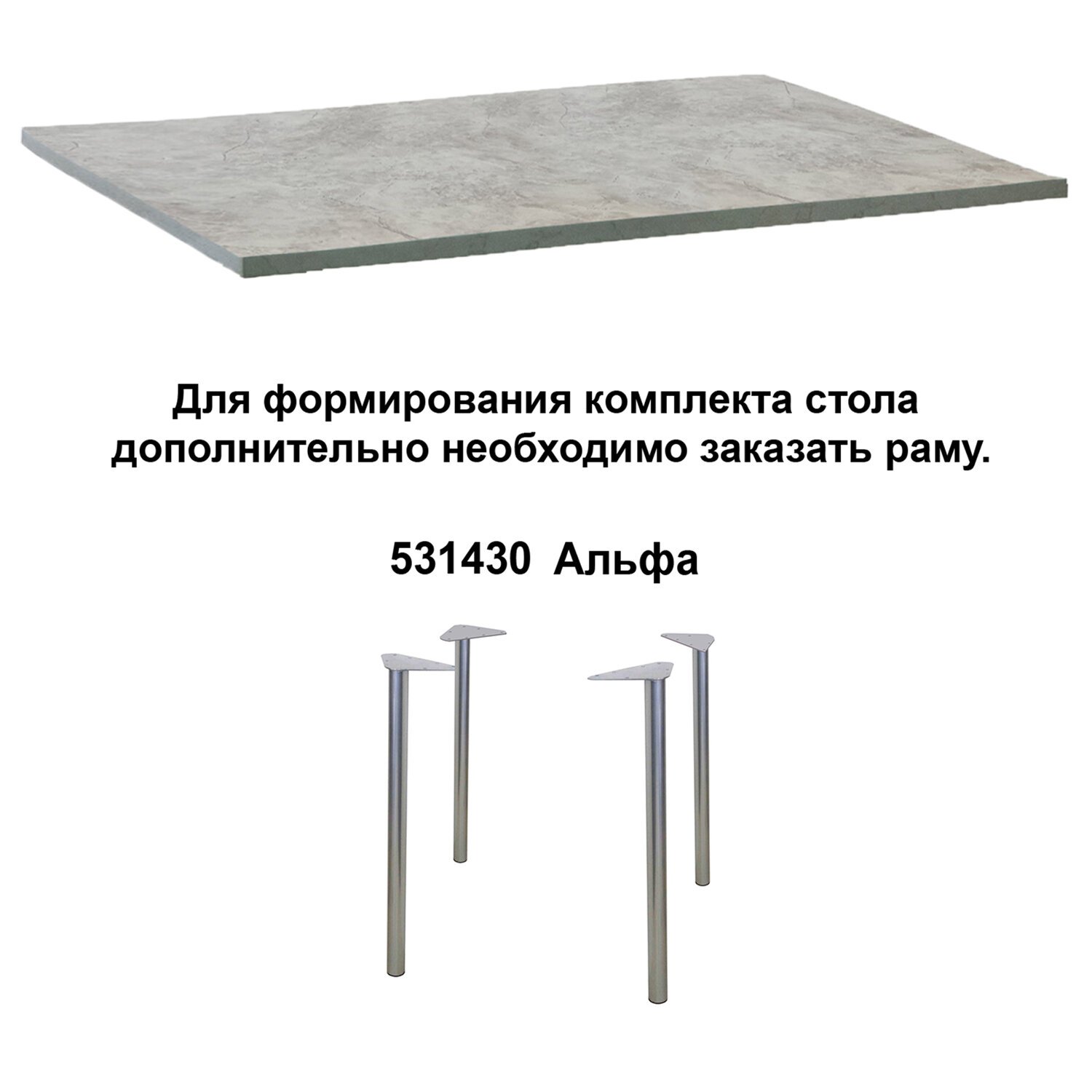 Столешница с пластиковым покрытием, предназначена для формирования комплекта стола. Дополнительно необходимо заказать одну из рам - 531429, 531430, 531431, 531049. Столы практичны и неприхотливы в обслуживании.