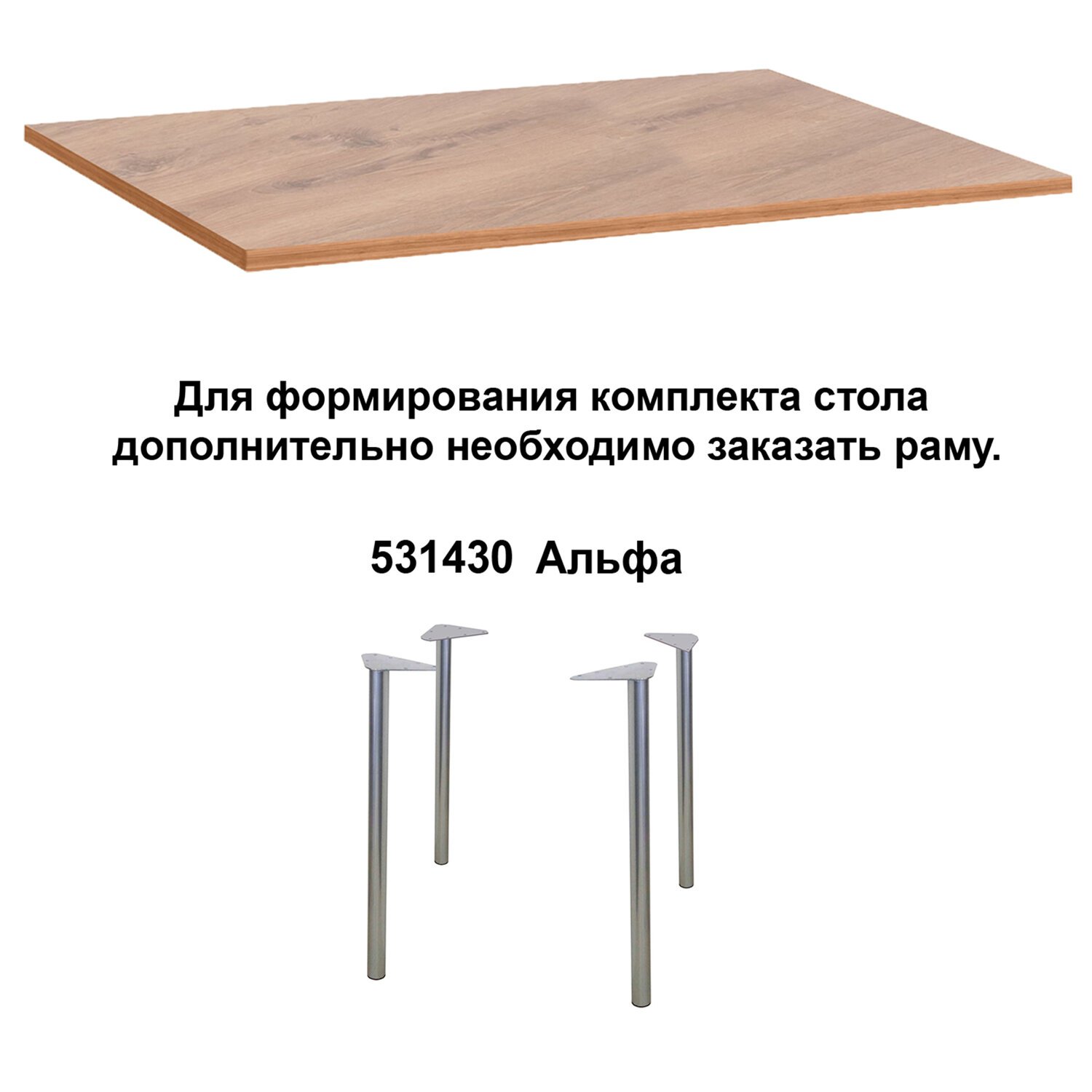 Столешница с пластиковым покрытием, предназначена для формирования комплекта стола. Дополнительно необходимо заказать одну из рам - 531429, 531430, 531431, 531049. Столы практичны и неприхотливы в обслуживании.