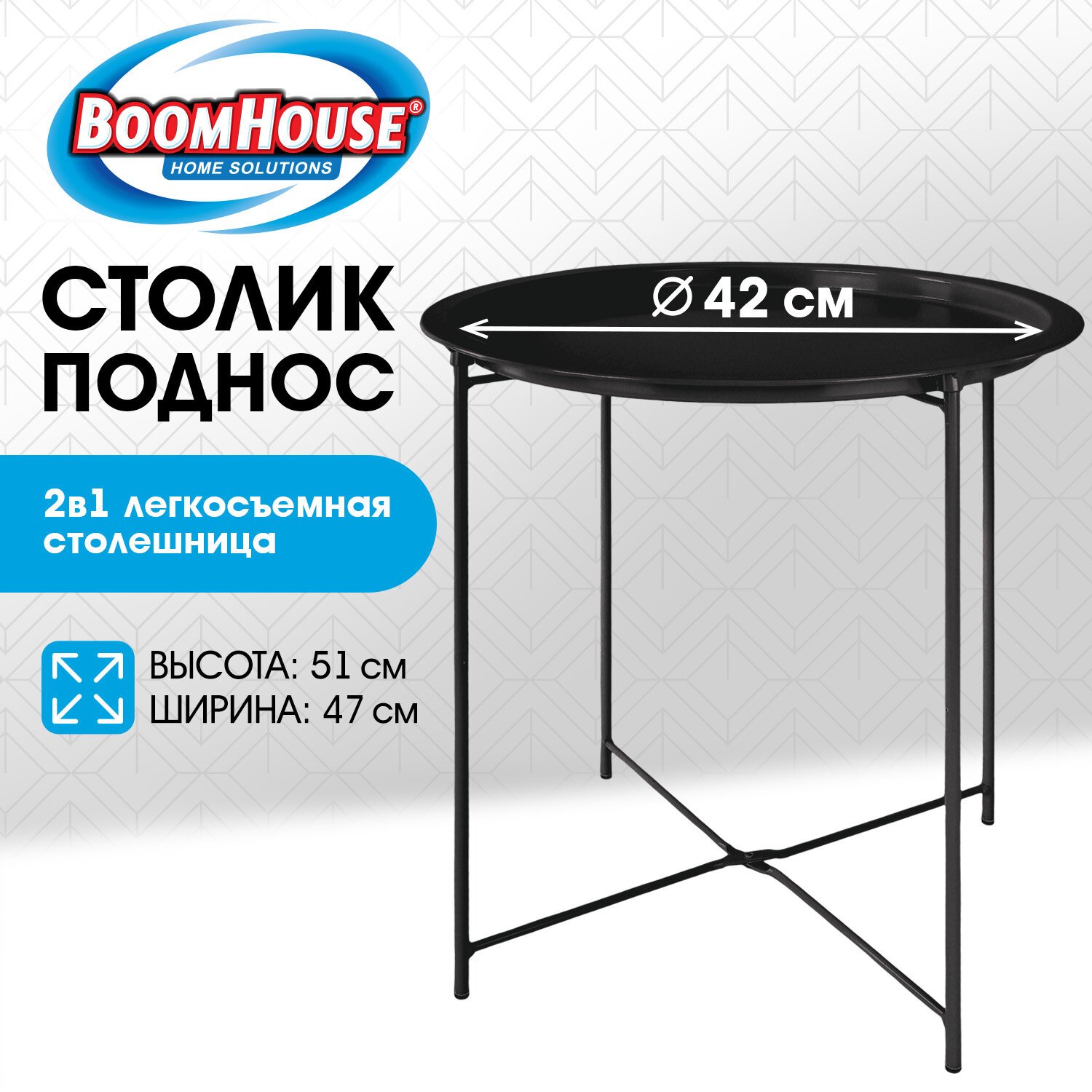 Столик-поднос BOOMHOUSE CT-003 кофейный (ширина 47*высота 51 см), металл, черный, 641938