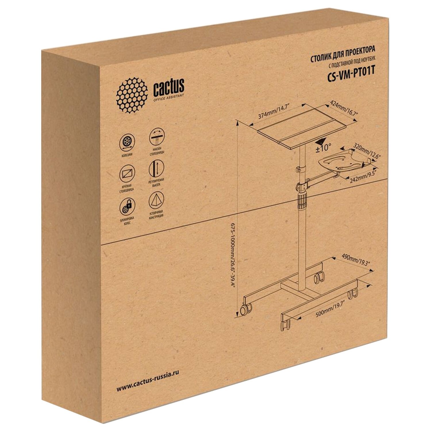 Столик проекционный передвижной с площадкой для ноутбука CACTUS (100х37х42 см), CS-VM-PT01T