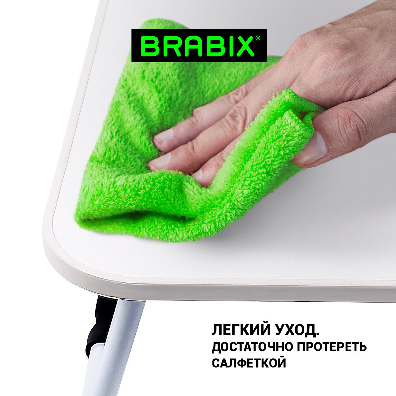 Столик для ноутбука BRABIX отлично подойдет для работы с ноутбуком лежа, для занятия творчеством, для завтрака в постели. Столик можно использовать в качестве полки. Также он станет полезным подарком для друзей, родственников и коллег.