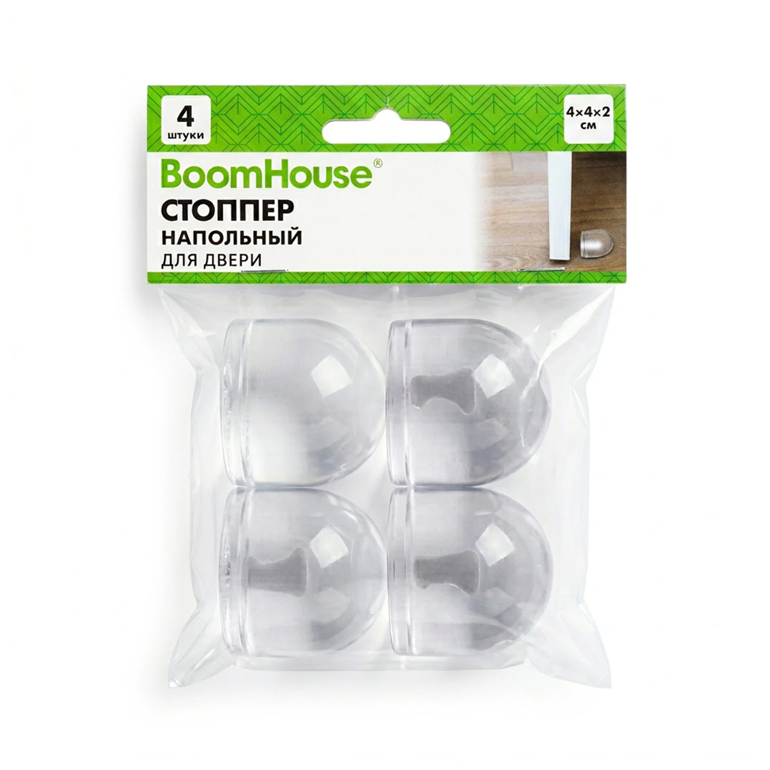 Стоппер напольный прозрачный, ограничитель для двери КОМПЛЕКТ 3+1 шт., BoomHouse, 701844