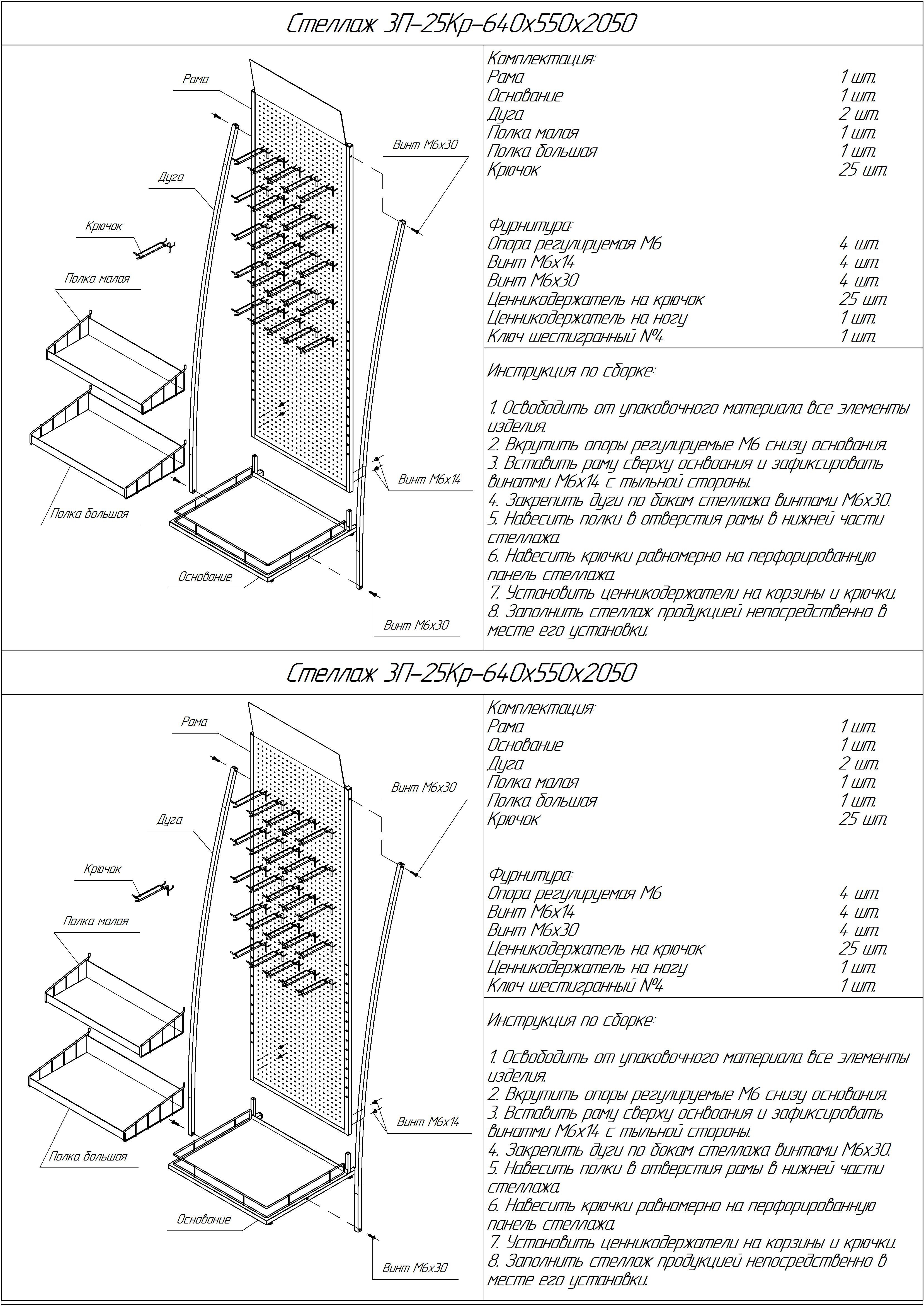 В комплект входит подробная инструкция по сборке стойки и рекомендация по размещению продукции бренда - грамотная планограмма, составлена специалистами группы компаний "Самсон".