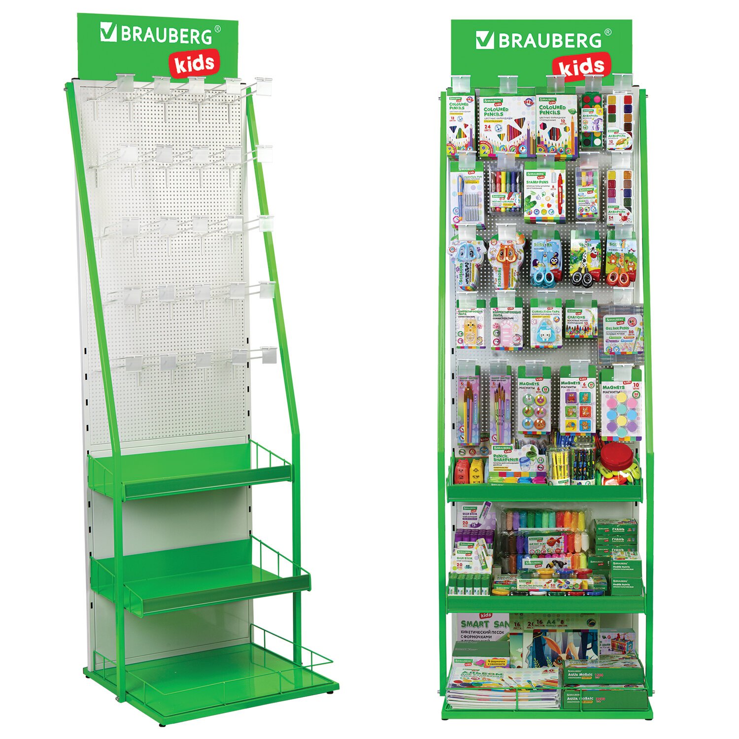 Стильная и вместительная фирменная стойка BRAUBERG KIDS позволит выгодно разместить продаваемый ассортимент и повысить объем продаж.