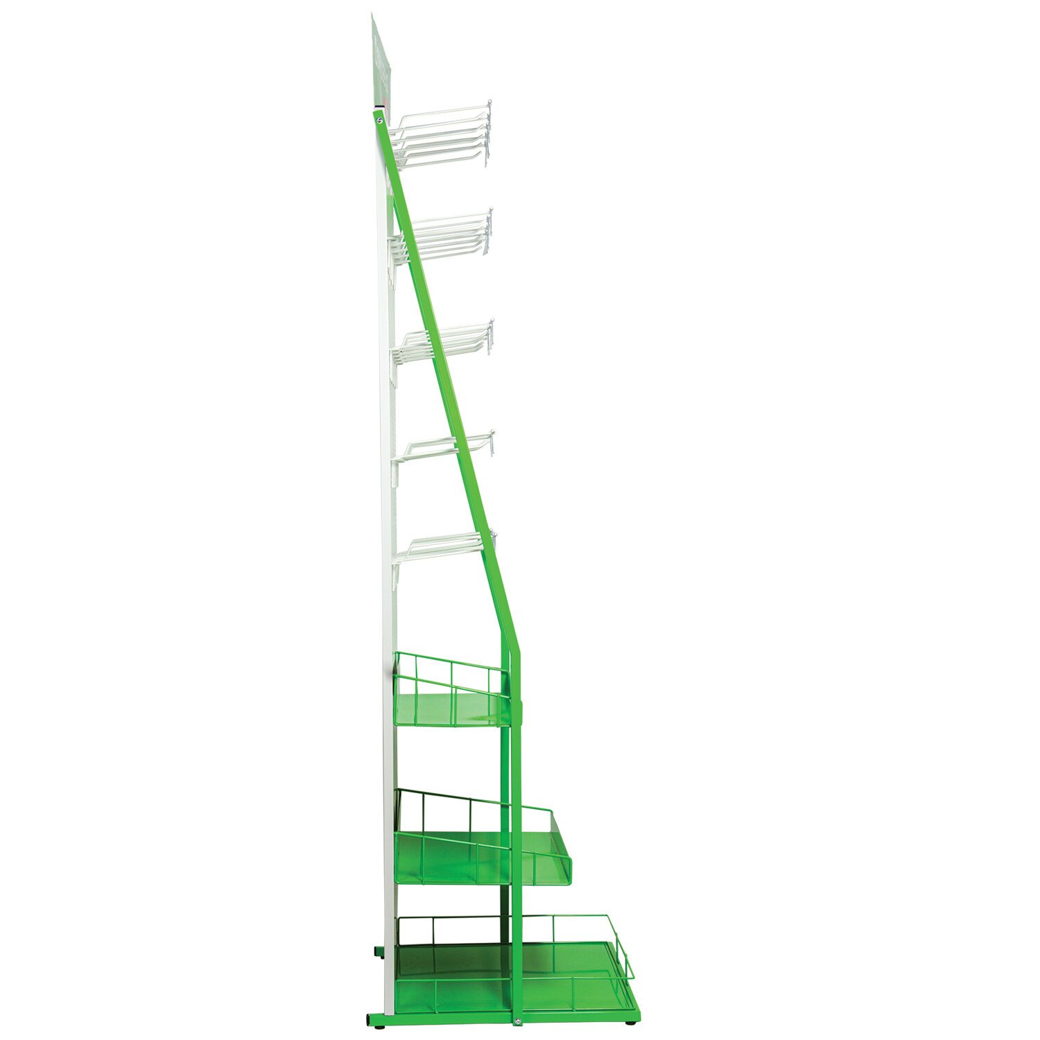 Яркая стойка идеально подходит для увеличения прибыли - товары размещаются на крючках с помощью подвесов и на полках. Таким образом, весь ассортимент легко рассмотреть, сравнить и выбрать необходимое.