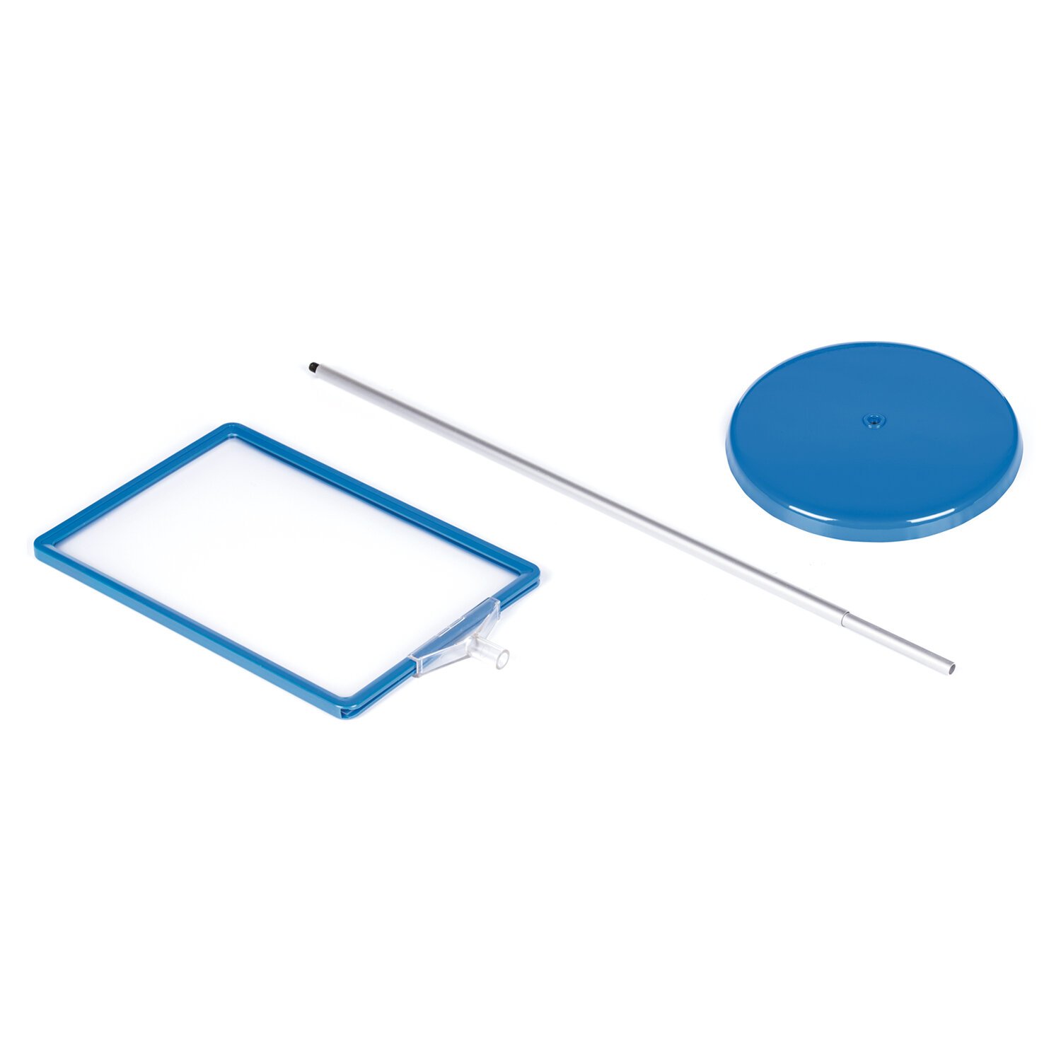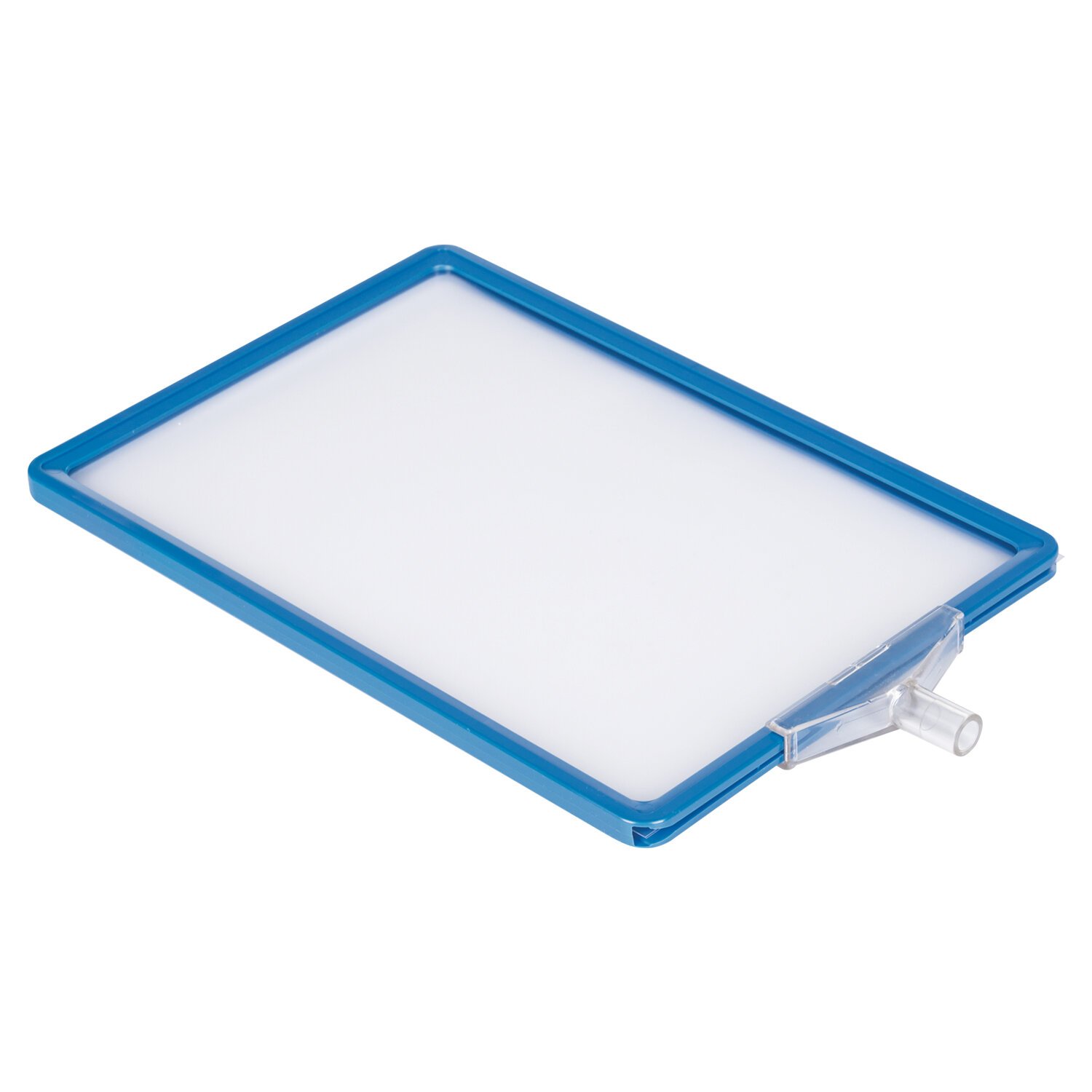 Рамку возможно установить как вертикально, так и горизонтально. Основание и рамка стойки выполнены в синем цвете. Трубка-держатель выполнена в сером металлическом цвете и регулируется по высоте от 60 до 100 см. Фиксация определенной высоты происходит путем проворота узкой части трубки по часовой стрелке. Максимальная высота собранной стойки-инфодержателя, с рамкой в вертикальном положении - 133 см. Подходит для листовок формата А4 (210х297 мм).